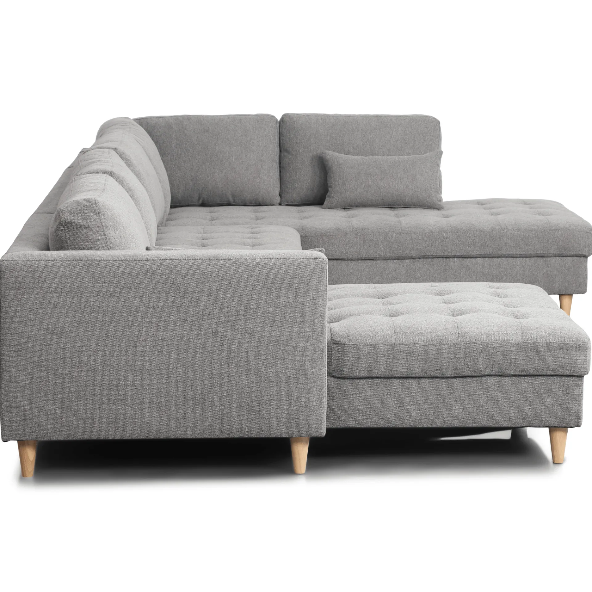 En u-formet sofa, der forener stil og komfort på en enestående måde. Med sit indbydende design og luksuriøse bløde grå materiale bliver Brandy det naturlige midtpunkt i ethvert moderne stueområde.