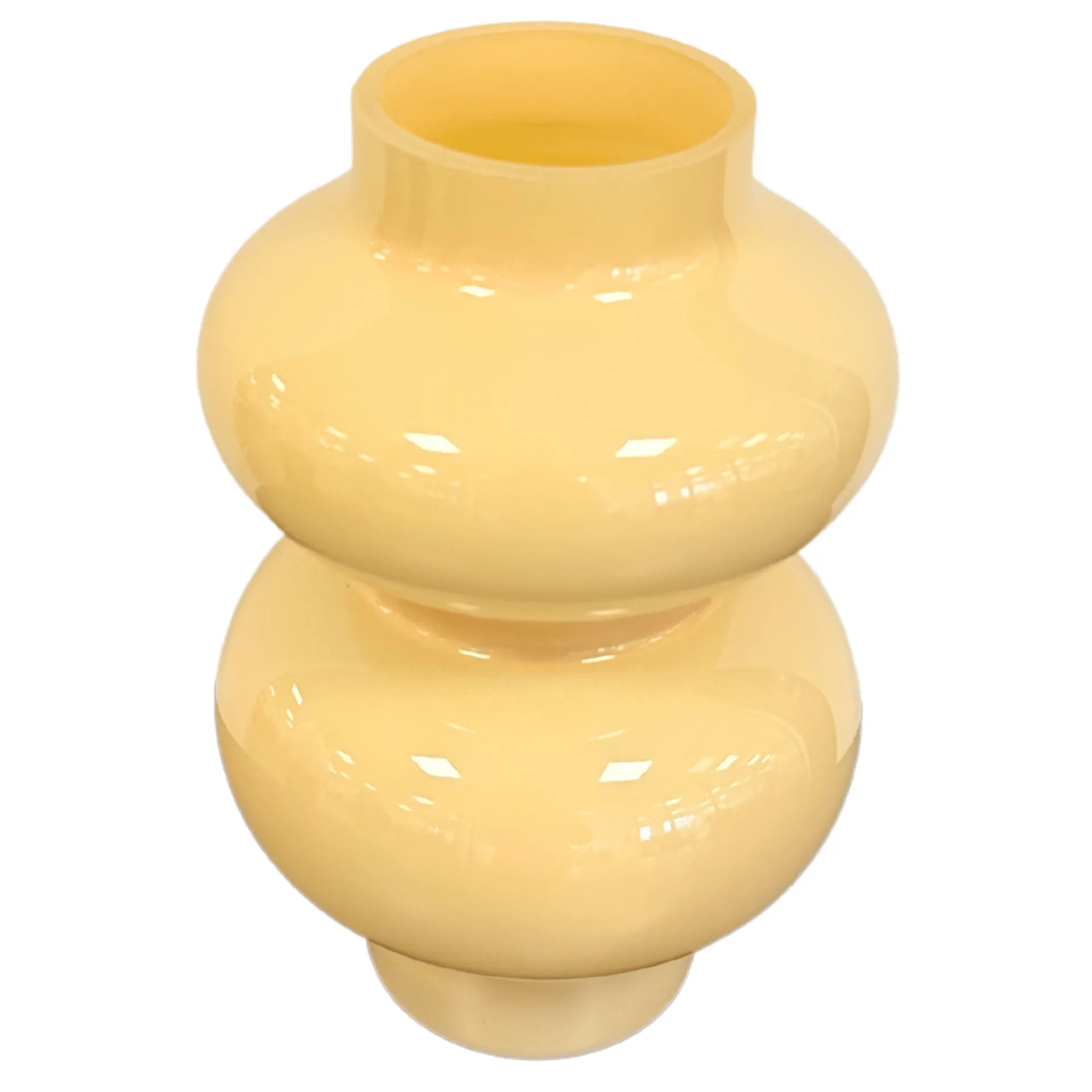 Denne stilfulde glasvase i en smuk gul farve tilføjer et moderne og elegant præg til din boligindretning. Vasen er lavet af farvet glas, hvilket giver den et varmt og indbydende udseende, der passer perfekt til både moderne og klassiske hjem. Med sin skulpturelle form er den ideel som et iøjnefaldende dekorativt stykke alene eller til at fremhæve dine yndlingsblomster.