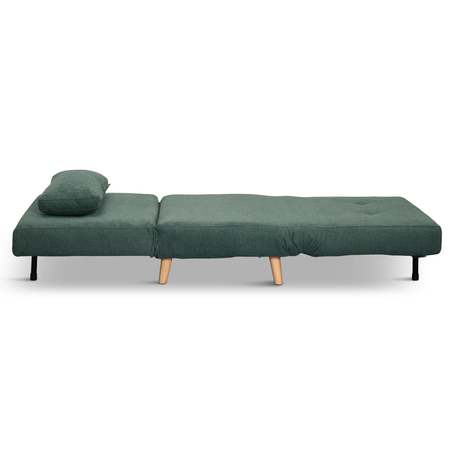 Ryglænet kan indstilles i tre forskellige positioner, så du altid finder den rette vinkel, uanset om du vil læse, slappe af eller sove. Der er skjulte ben i begge ender, som hurtigt foldes ud, når stolen skal bruges som seng.