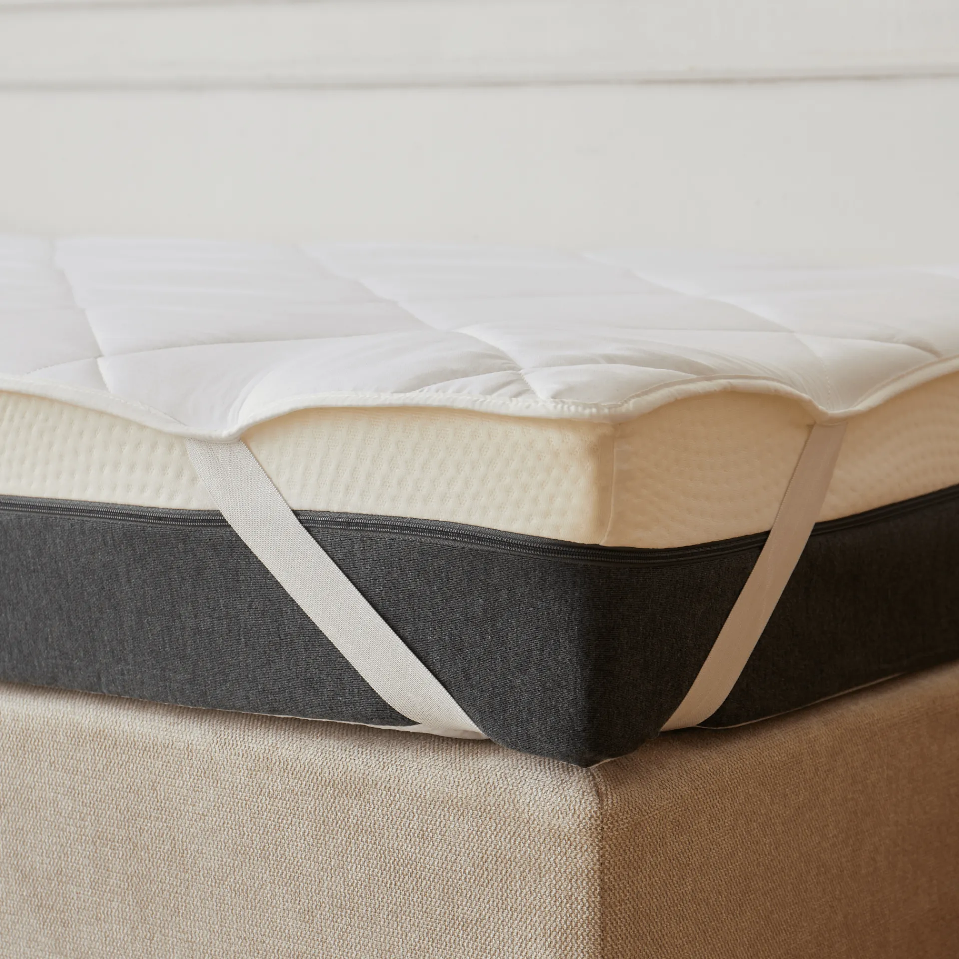 | Materiale | • Polyesterfiberfyld (quiltet for jævn fordeling og formstabilitet) • Elastikstropper i hjørnerne (sikrer korrekt placering) |