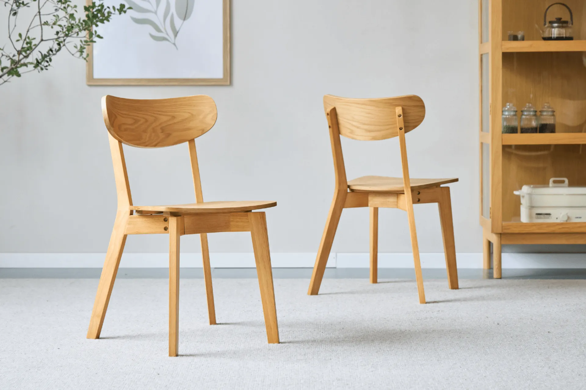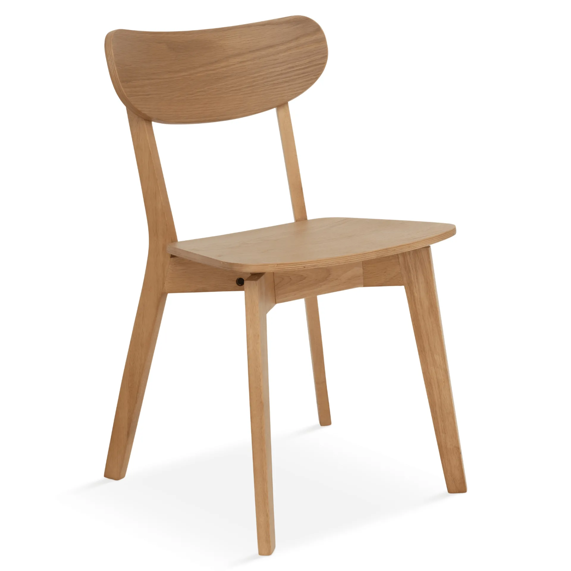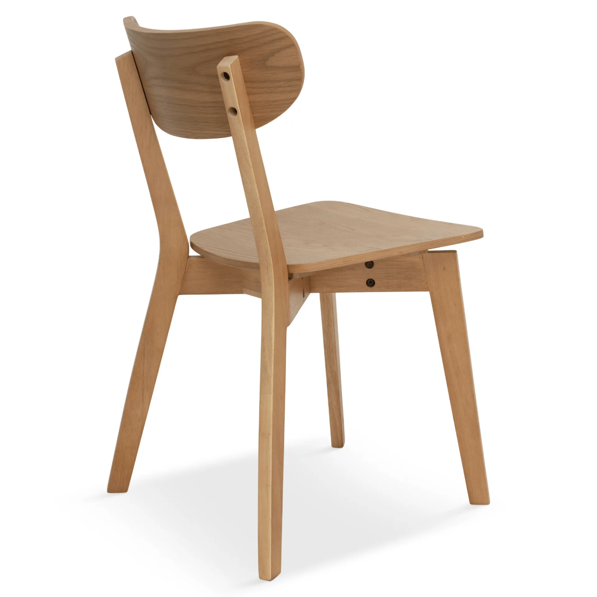 Enkel og tidløs spisebordsstol med let buet ryglæn, der giver ekstra støtte. Stolen er lavet i egefiner og har et klassisk trælook, der passer ind i både moderne og mere traditionelle hjem.