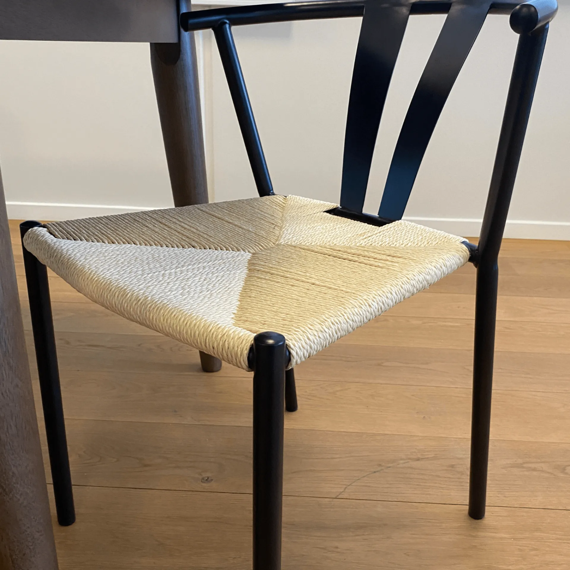 | Materiale | Stel: Metal med folie Sæde: Egevævning (Naturflet) |