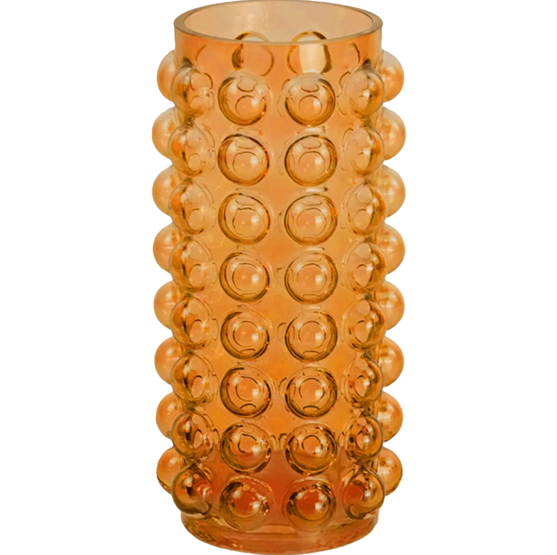 Denne unikke ravfarvede glasvase med bobleform tilføjer et legende, farverigt og moderne præg til din boligindretning. Den ravfarvede nuance bringer varme og liv til ethvert rum, mens bobleoverfladen skaber en spændende visuel oplevelse. Vasen er perfekt til at fremhæve dine yndlingsblomster eller som et iøjnefaldende dekorativt stykke alene. Placer den på spisebordet, i vindueskarmen eller på en hylde for at tilføje et strejf af farve og personlighed til dit hjem.