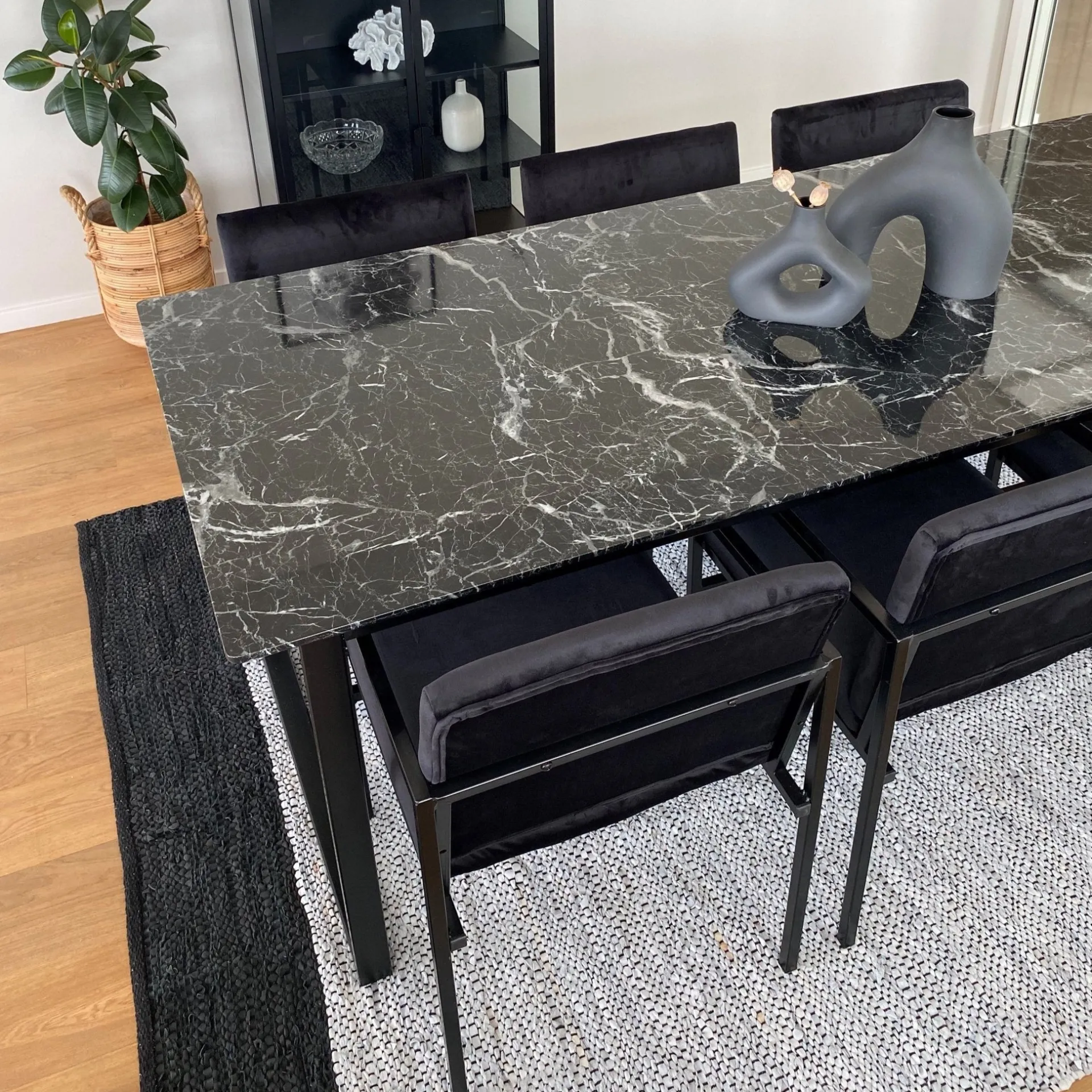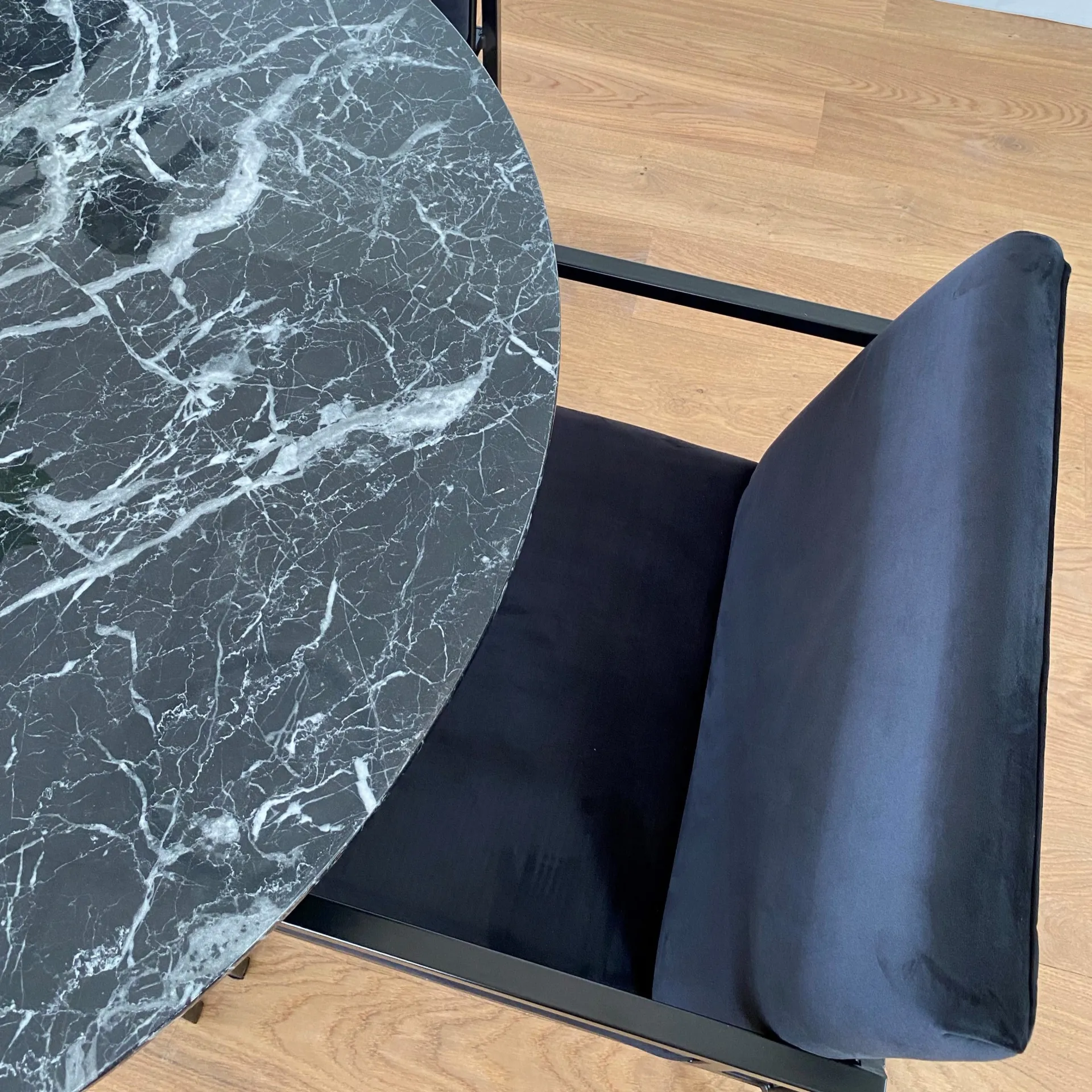 Allie – Minimalistisk Sort velour stol med armlæn