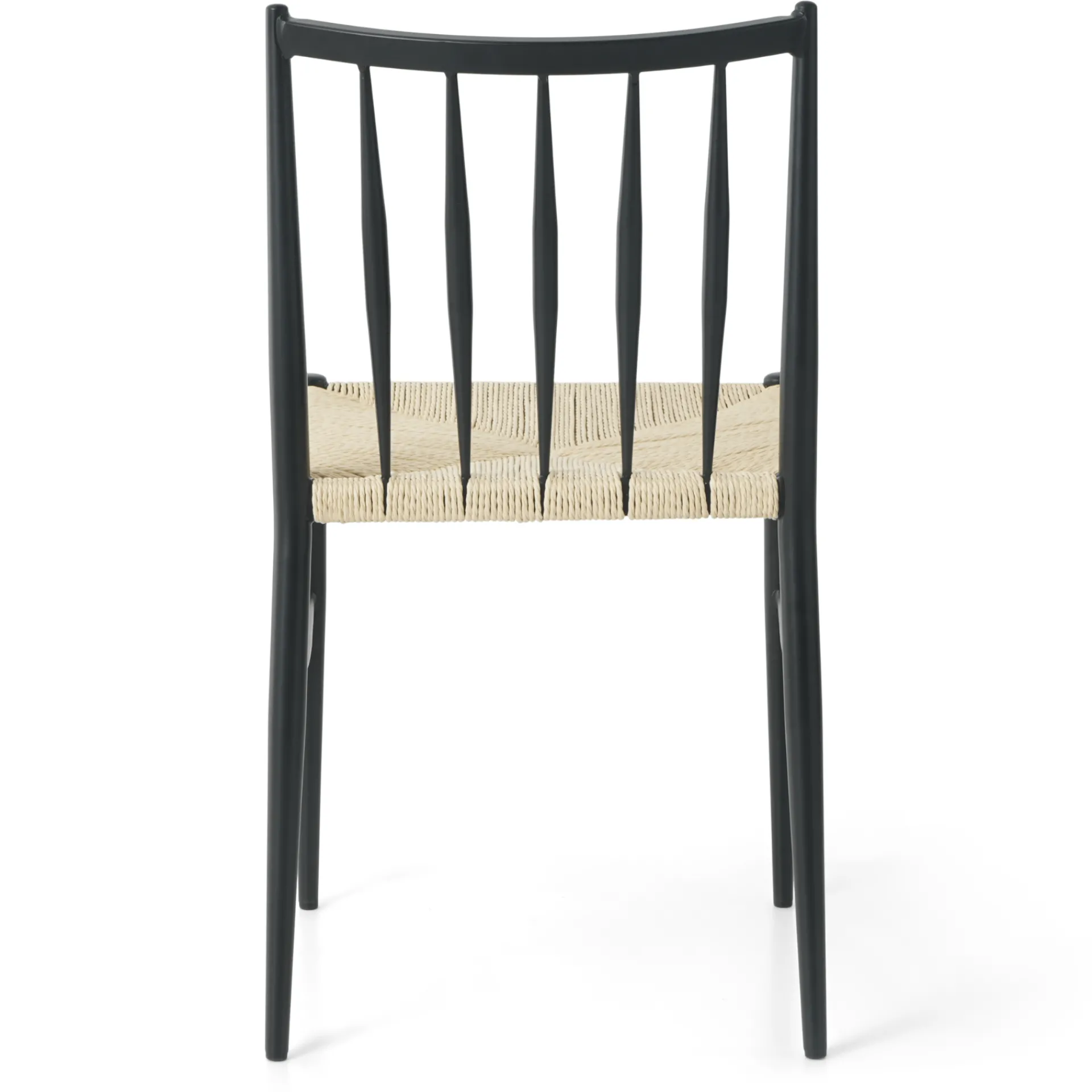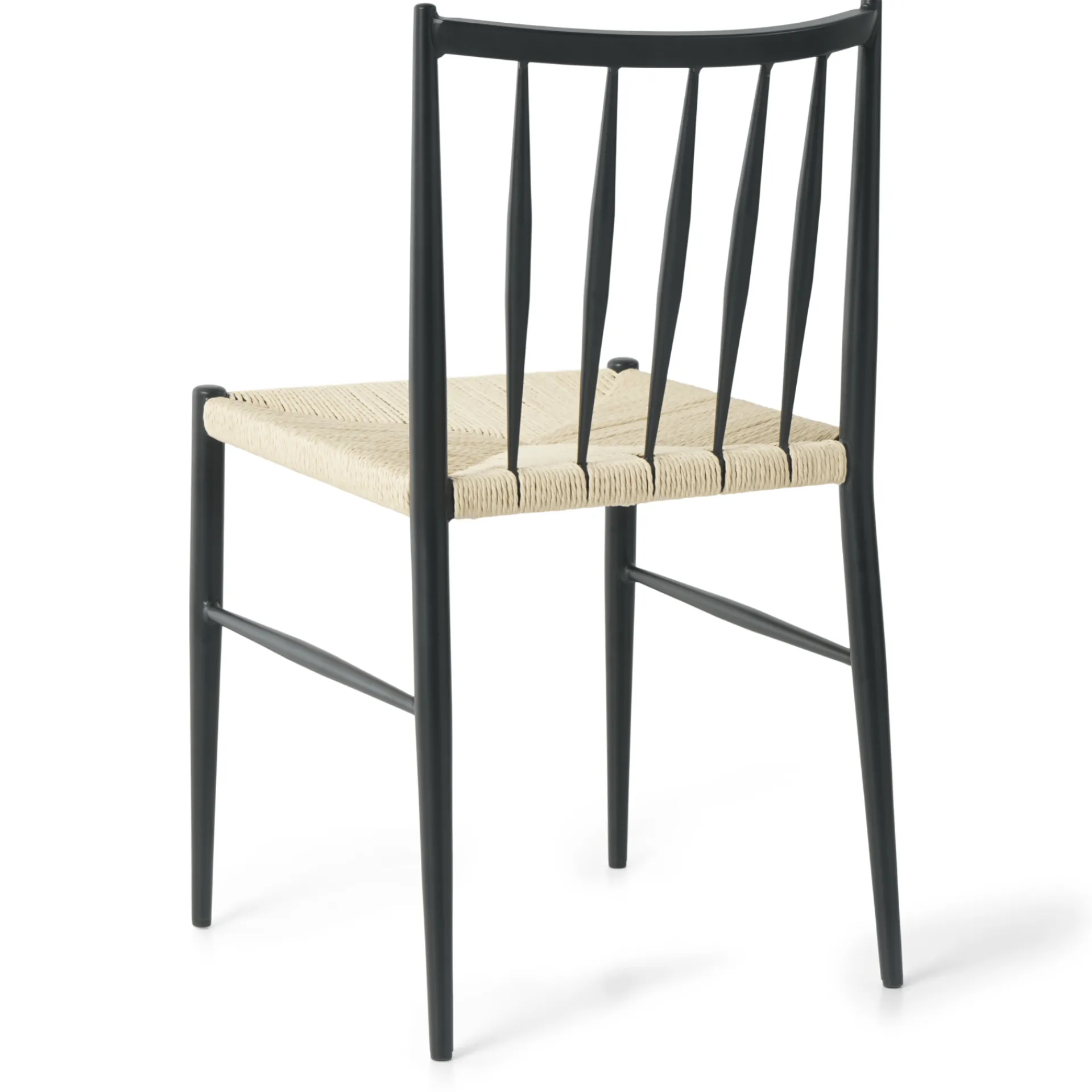 Tilføj et klassisk touch til dit hjem med denne stilfulde spisebordsstol, der kombinerer moderne design med tidsløse materialer. Stolen har en robust ramme i sortlakeret metal, slanke ben og et ryglæn, som giver god støtte.