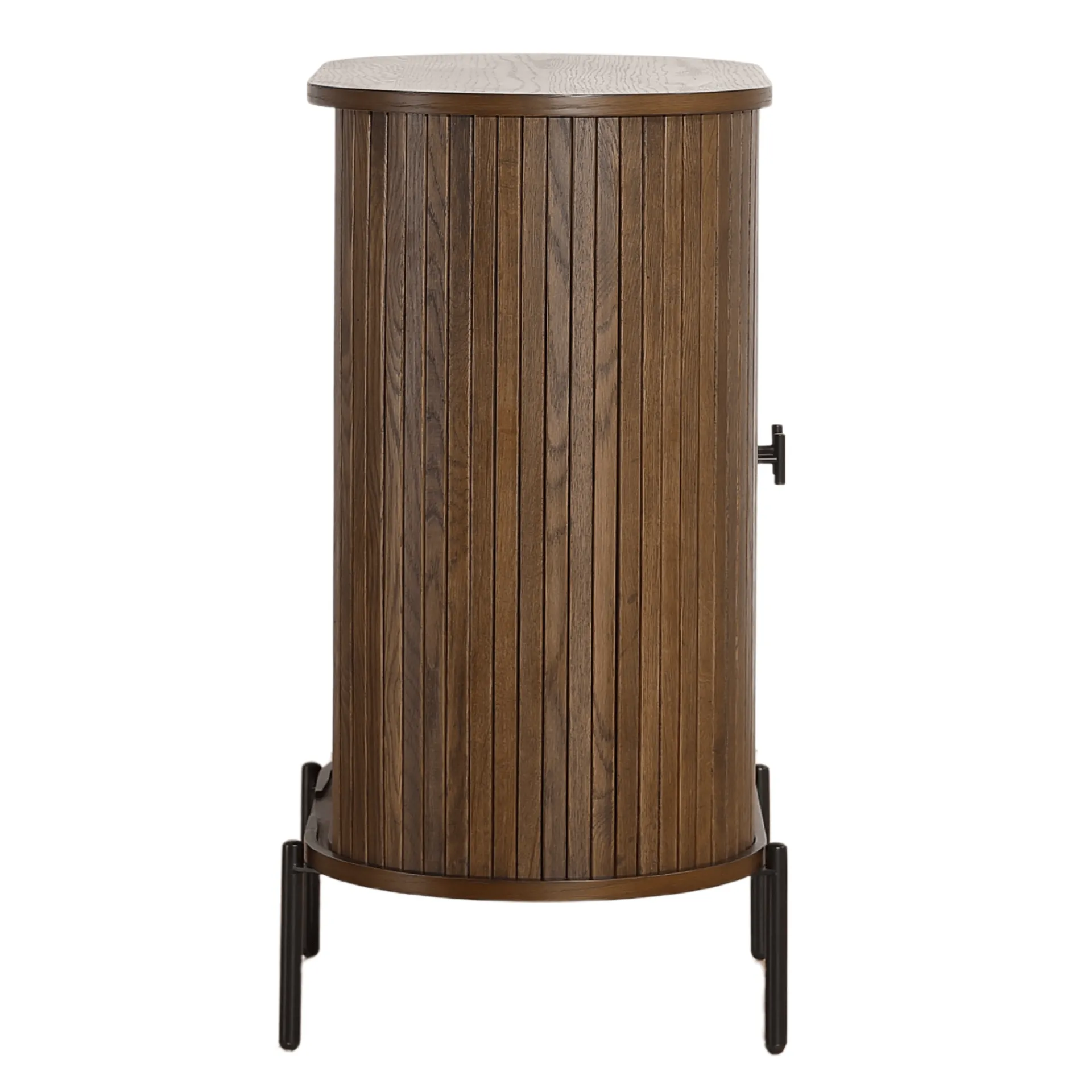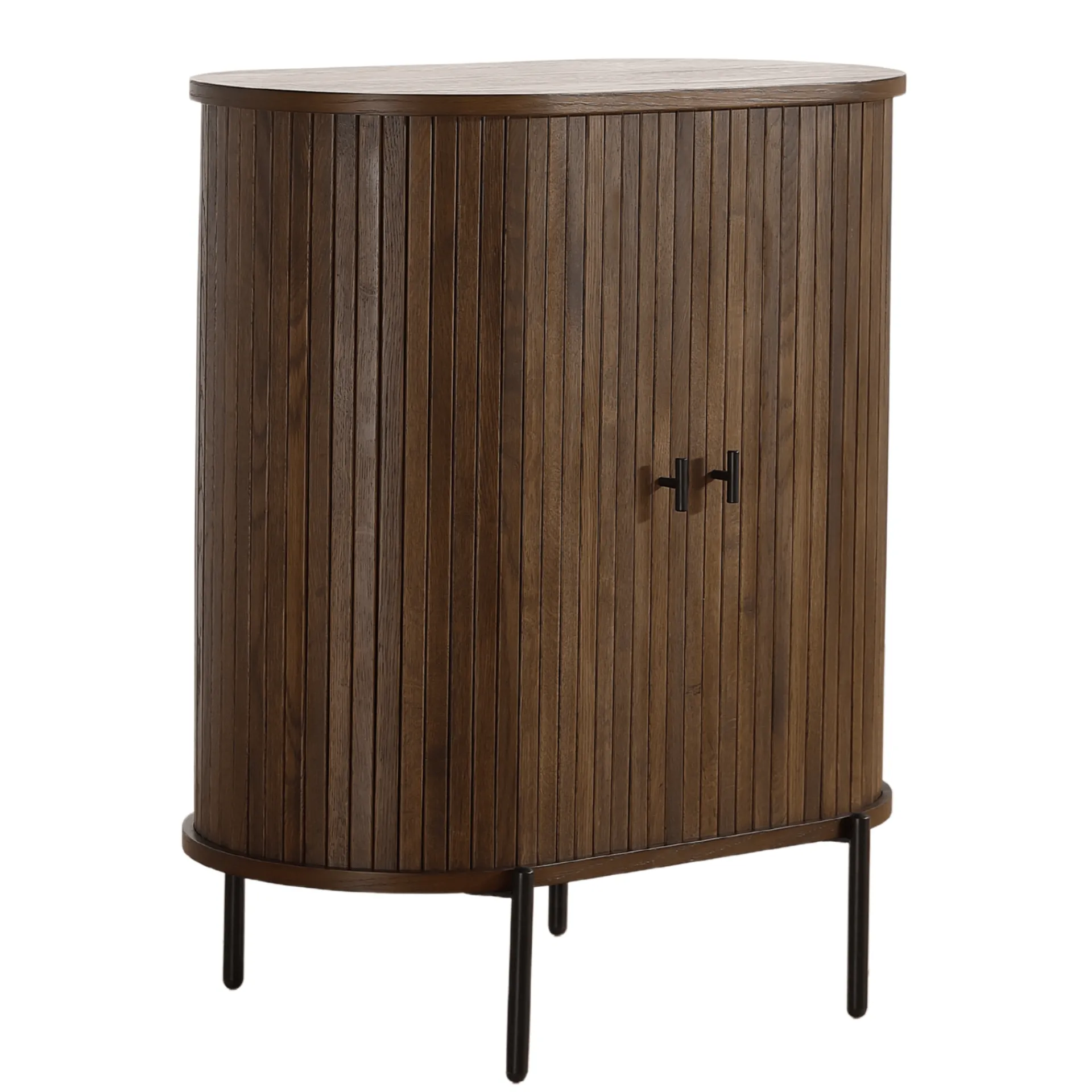 Skabet tilføjer dybde og karakter til ethvert rum. Skabet måler 70x40x85 cm, hvilket gør det ideelt til små rum, hvor opbevaring er nødvendig uden at gå på kompromis med stilen. De røgede jalousi-låger giver en sofistikeret detalje, der fremhæver skabets moderne design. Det mørke træ kombineret med den funktionelle opbevaringsløsning gør dette skab ideelt til dem, der søger en balance mellem funktionalitet og kontrast.