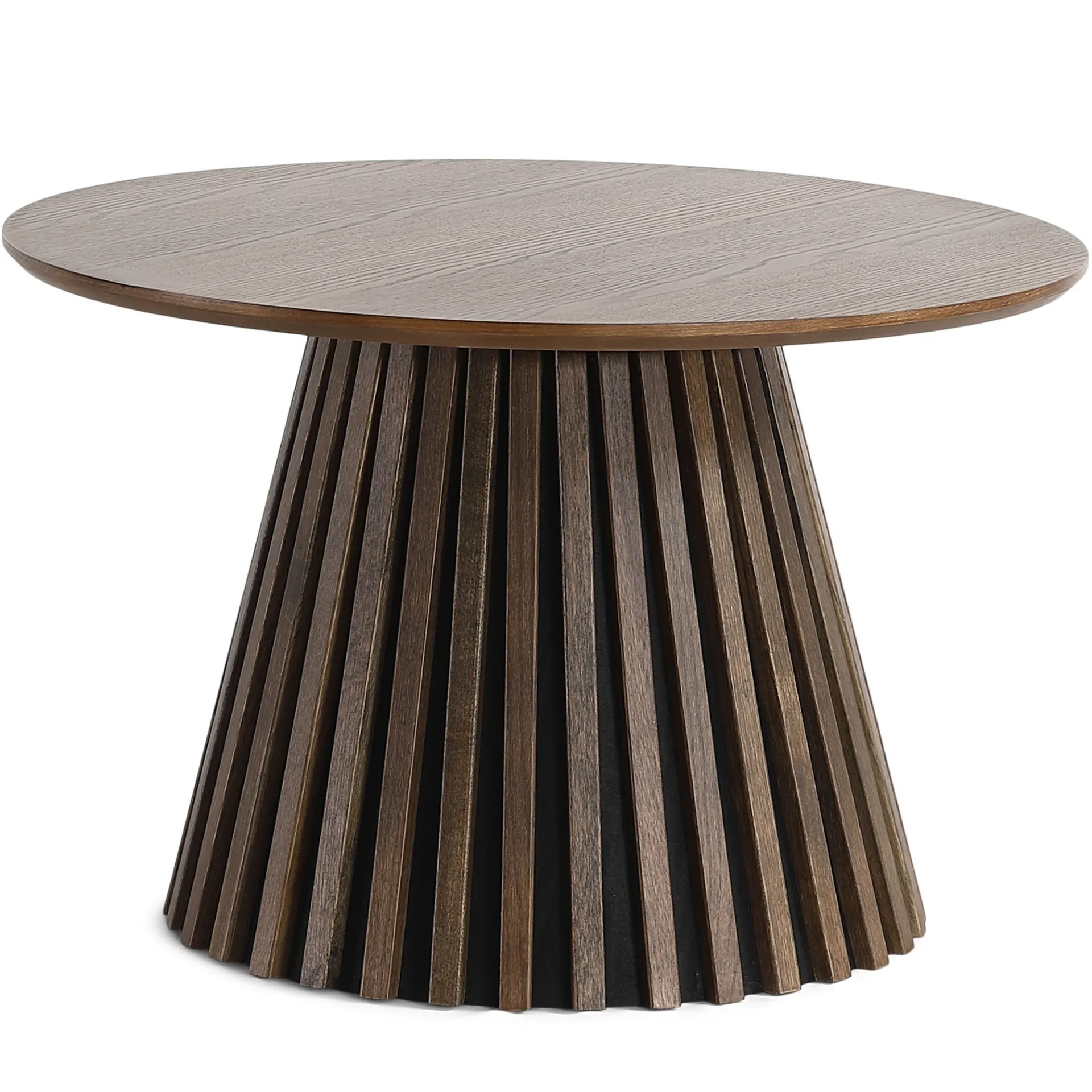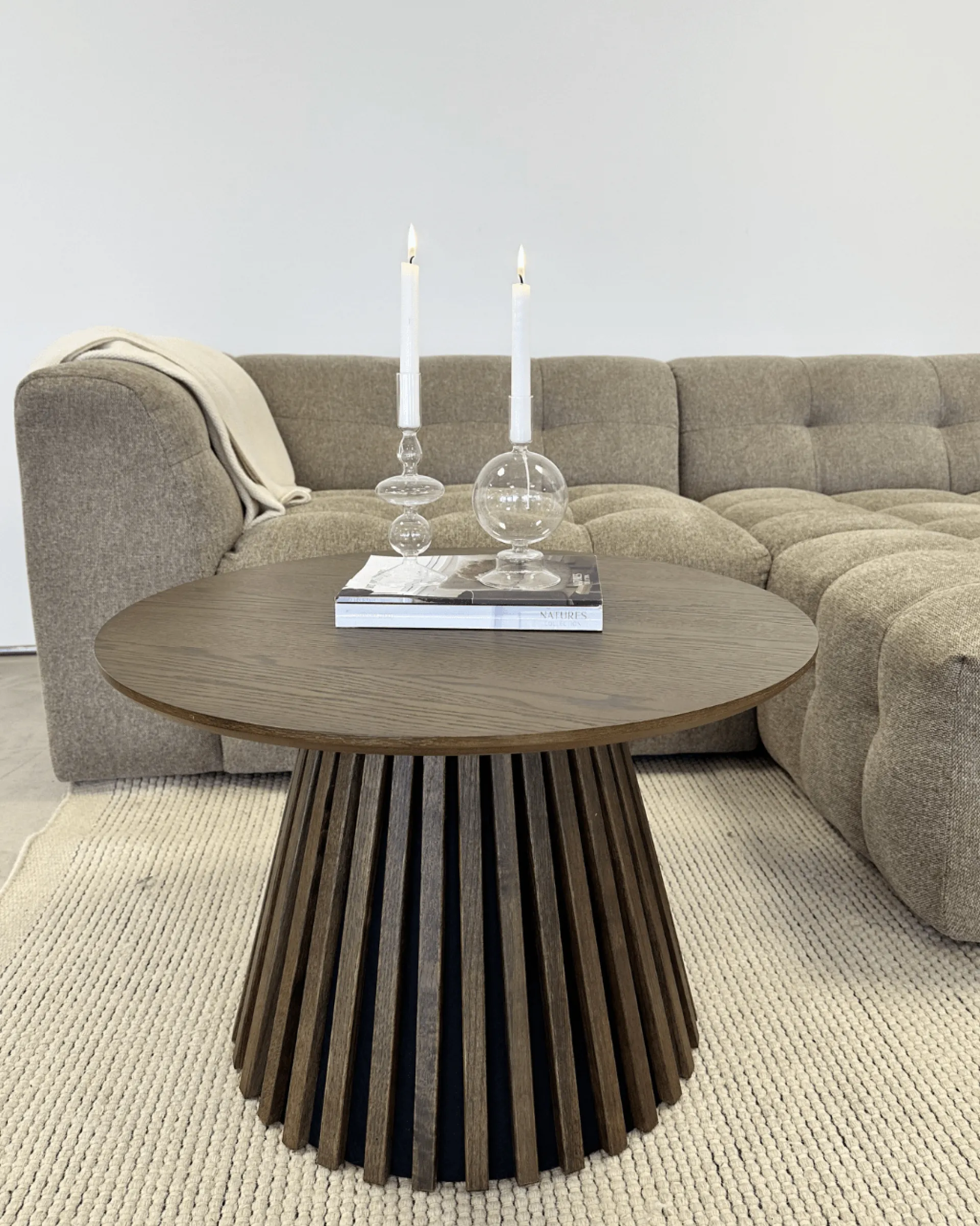 Uanset om det bruges til at vise dekorative genstande, holde kaffekopper eller som et sted at hvile fødderne, vil vores Lewis sofabord i røget eg med søjlefod i lameller være en værdsat tilføjelse til enhver hjemmeindretning.