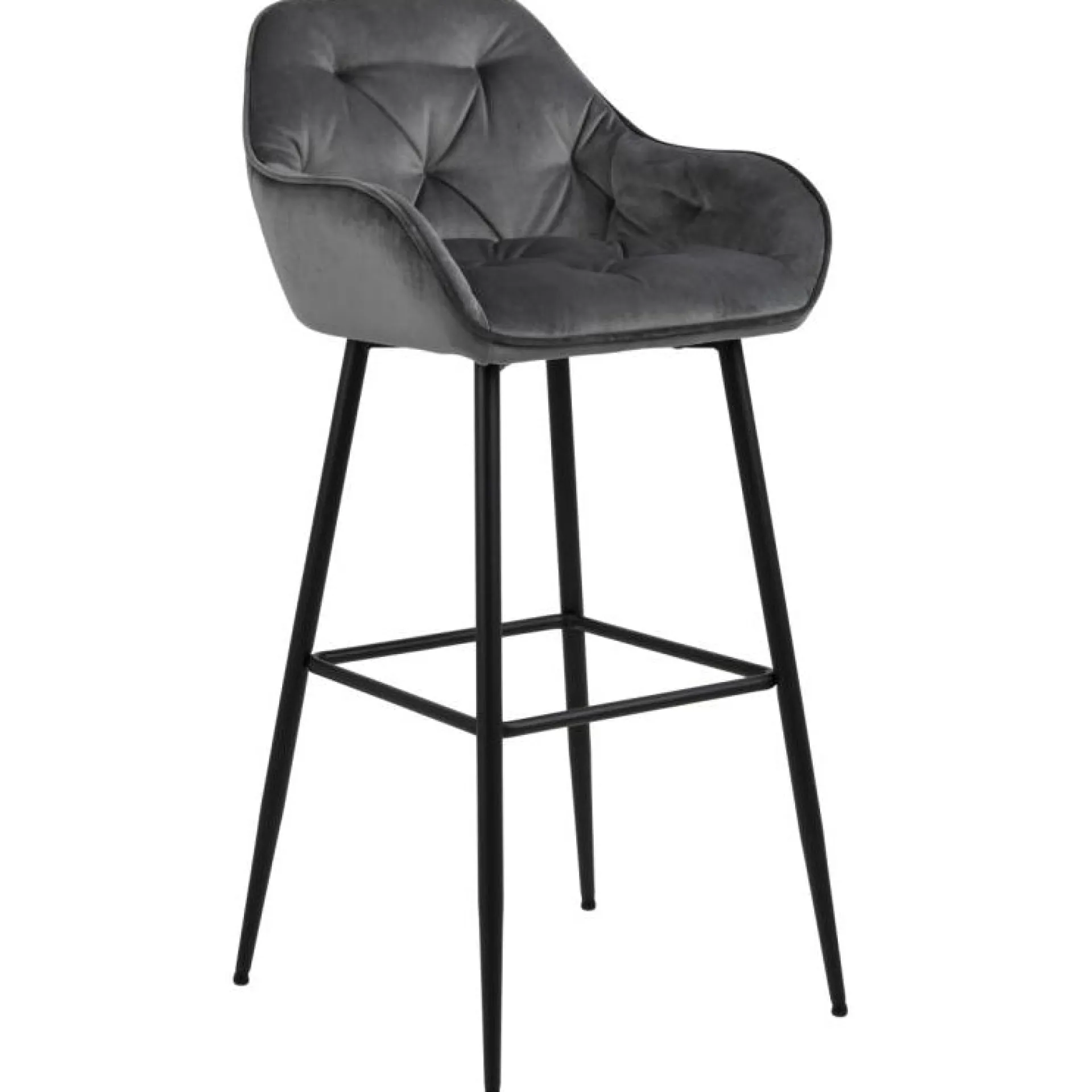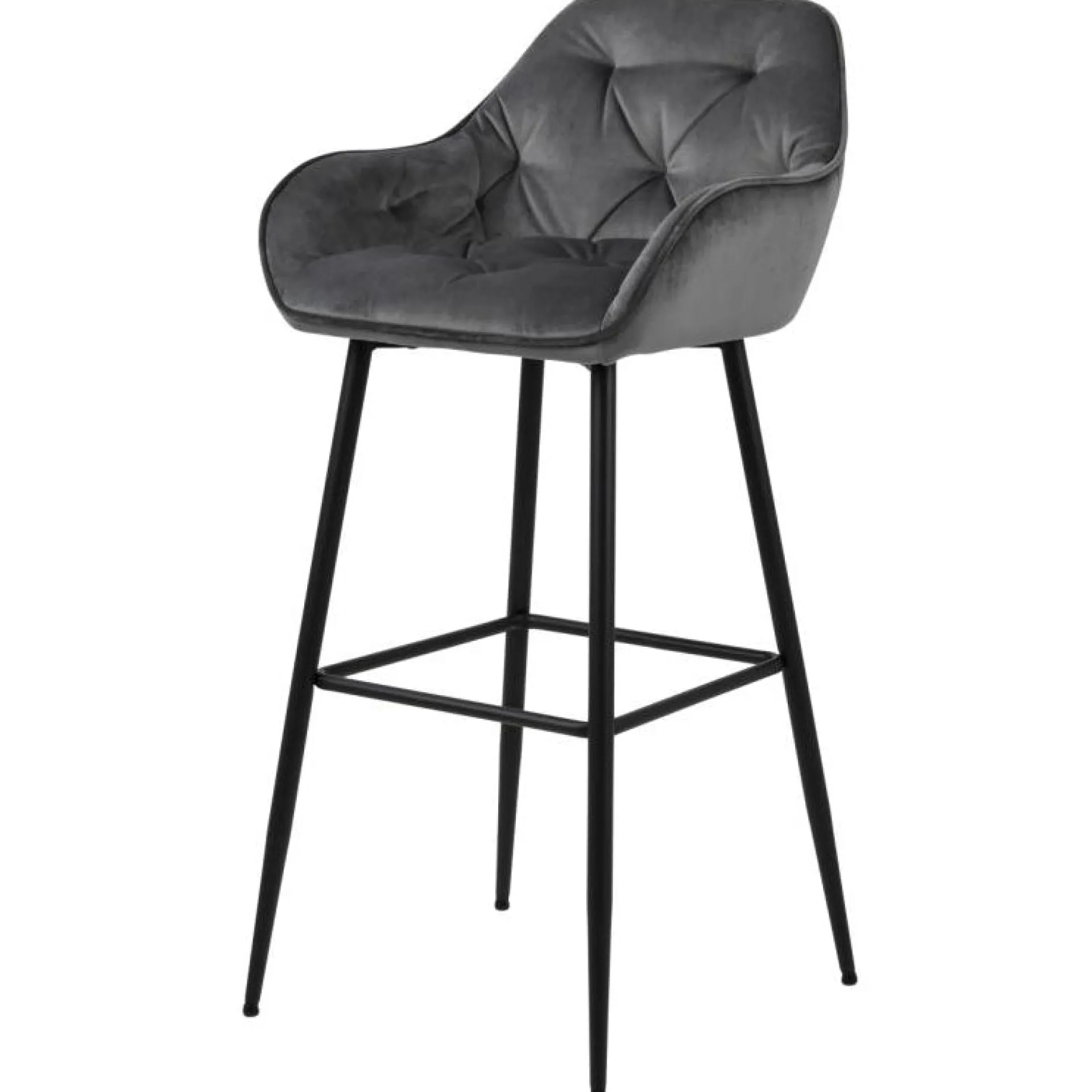 Vores Mario barstol er en vores bestsellere og ønsker du en sammenhængende stil i dit hjem, findes der en matchende spisestol, så du kan fuldende din indretning. Velour er en af tidens store boligtrends og den trend rammer vores Mario barstol ind i. Det er en unik, rummelig og flot barstol beklædt i blød velour og med en god høj ryg og behagelige armlæn. Stolen er polstret, hvilket giver en god og behagelig siddekomfort og man kan derfor sidde i stolen i mange timer.
