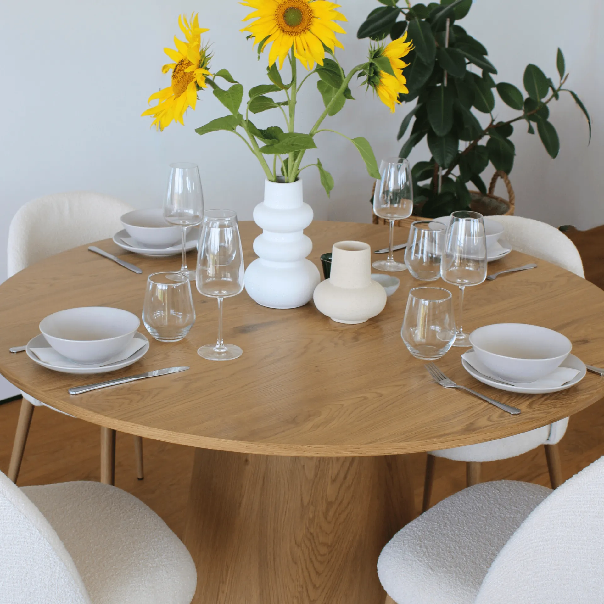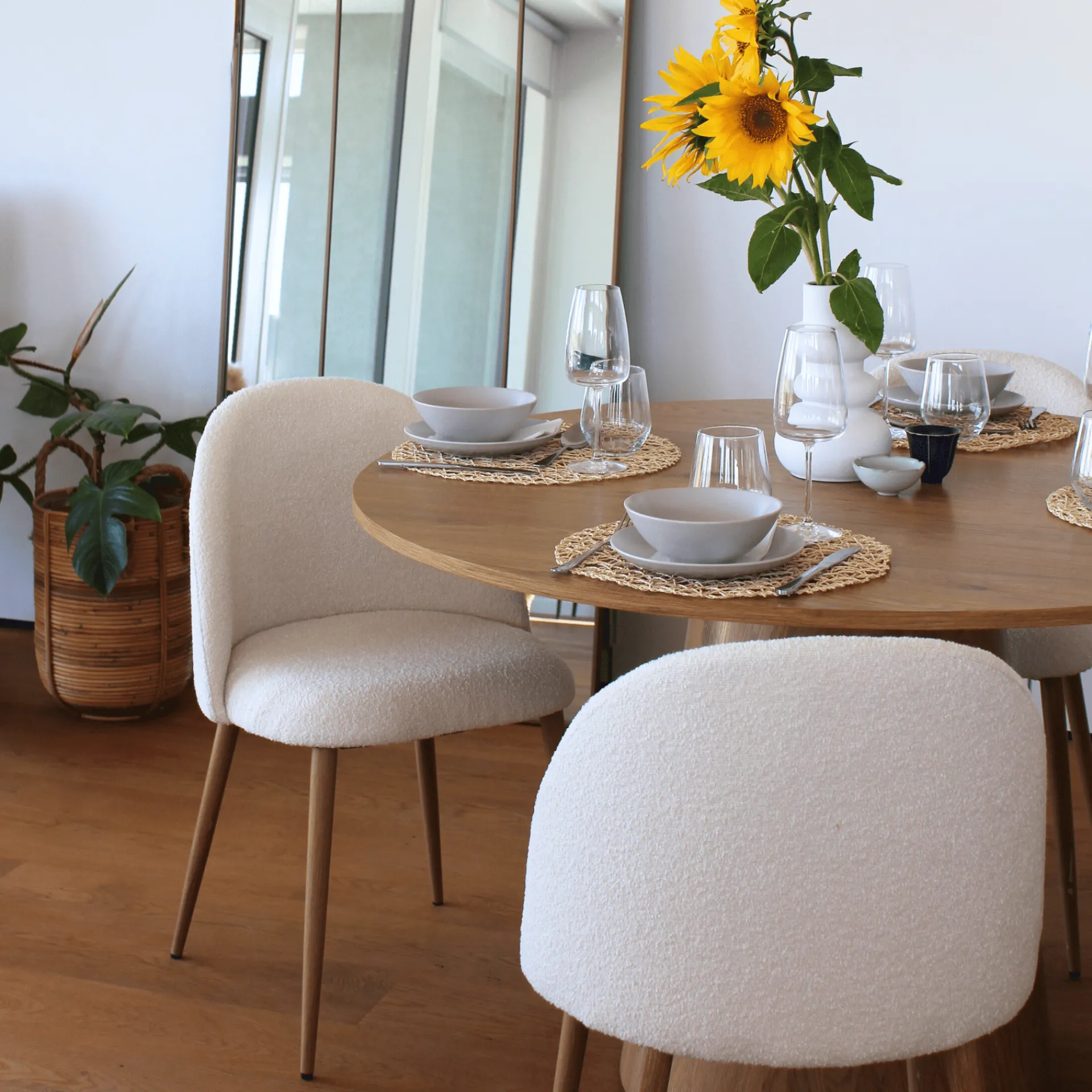 Alicia spisebordsstol – boucle i hvid med egetræsben