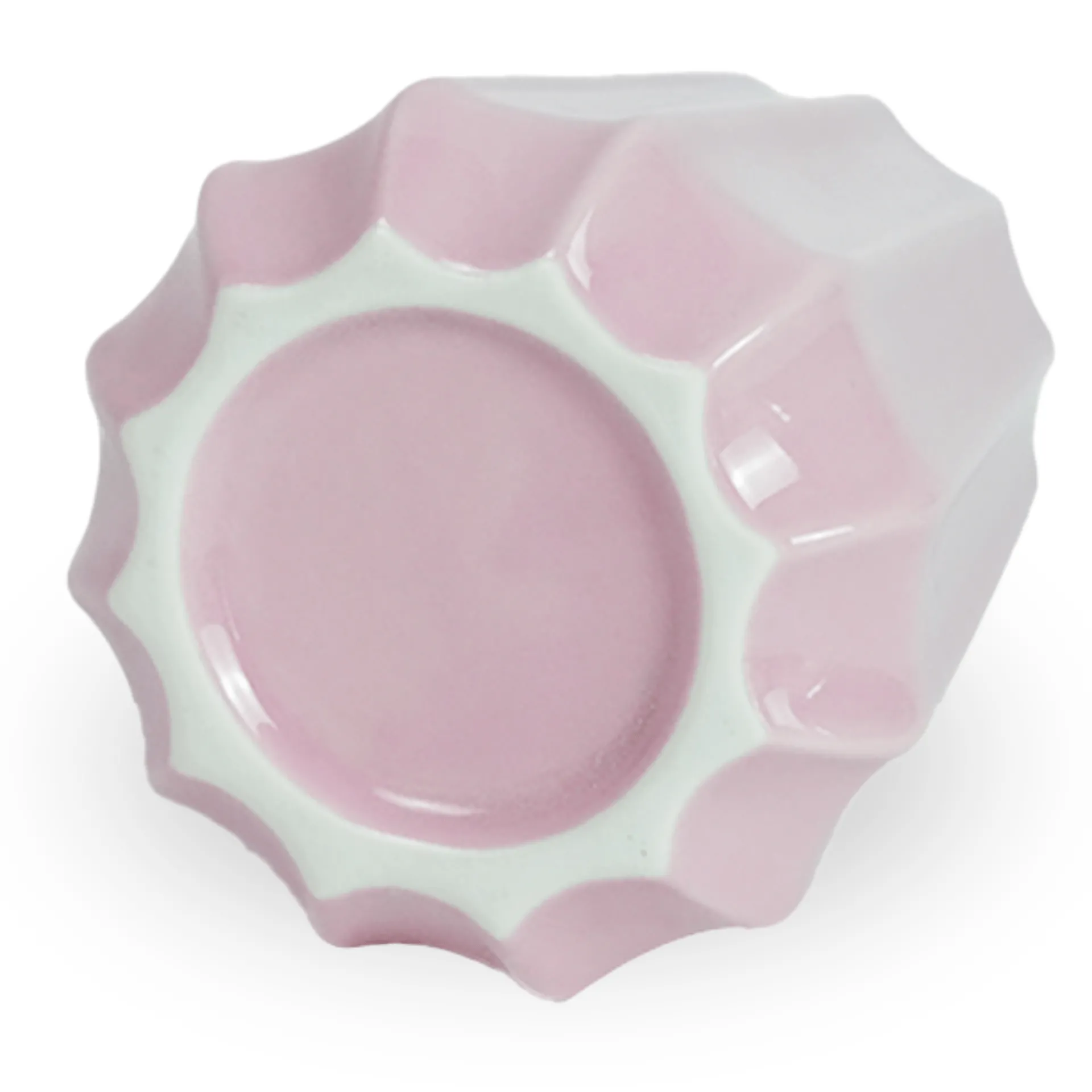 Lyserød vase med facetteret design