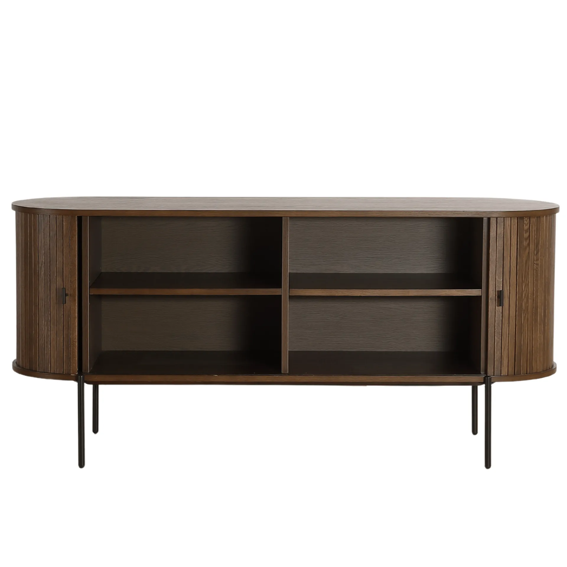 Denne skænk i røget eg, der måler 160x45x75 cm, kombinerer funktionalitet og stil. De rene linjer og den dybe, røgede træfinish tilføjer dybde og kontrast til din indretning. Med rummelige skuffer og hylder tilbyder den rigelig opbevaringsplads til dine ejendele, mens det robuste håndværk sikrer holdbarhed og lang levetid. Brug den i spisestuen til at opbevare service og borddækning, eller i stuen som et stilfuldt opbevaringsmøbel.