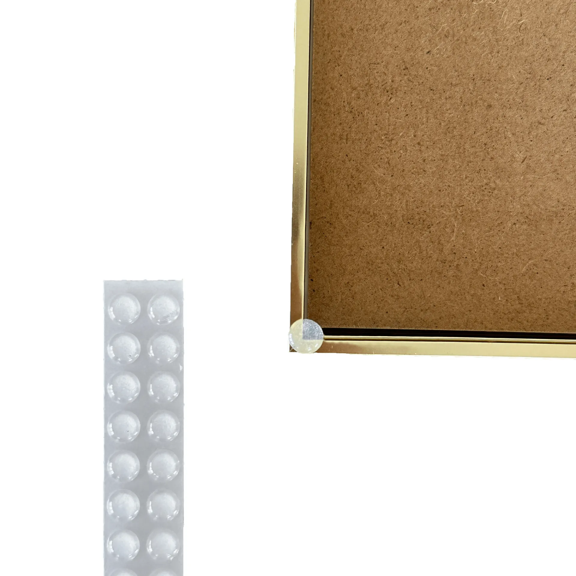 Med disse selvklæbende gummidutter beskytter du dine vægge mod mærker fra billedrammer, spejle og andre ophæng. De små, transparente klæbepuder placeres diskret på bagsiden af rammen, så der er ingen direkte kontakt mellem ramme og væg.