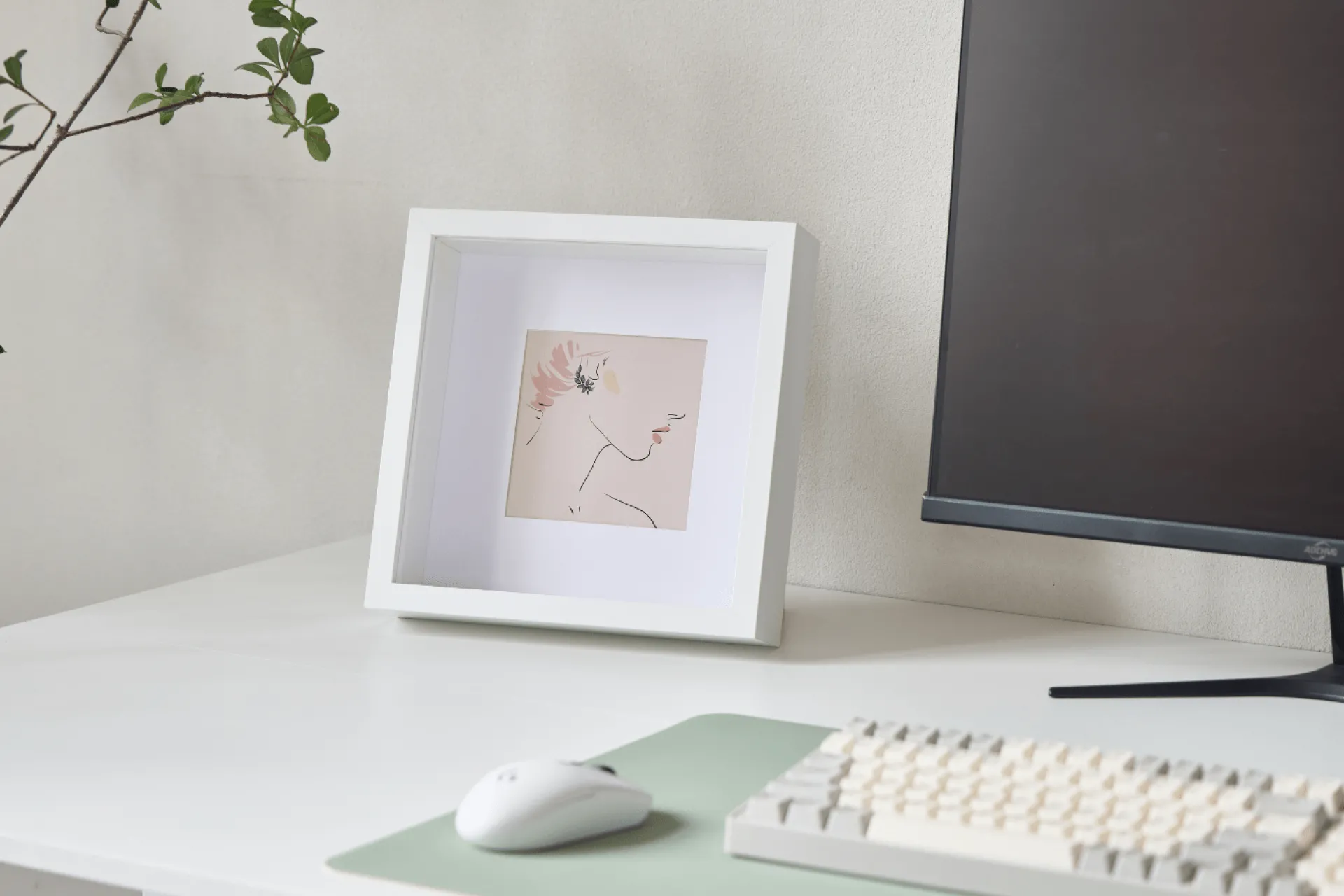 Salma er en stilren og moderne 3D-objektramme, der passer perfekt til både kunstværker og personlige minder. Denne ramme er ideel til dekoration og kan bruges til at fremvise alt fra fotos til små objekter, hvilket giver dit hjem et personligt præg. Rammen fås i hvid, sort og eg og er fremstillet i MDF egetræ med en holdbar folie, som giver et elegant og tidløst udtryk.