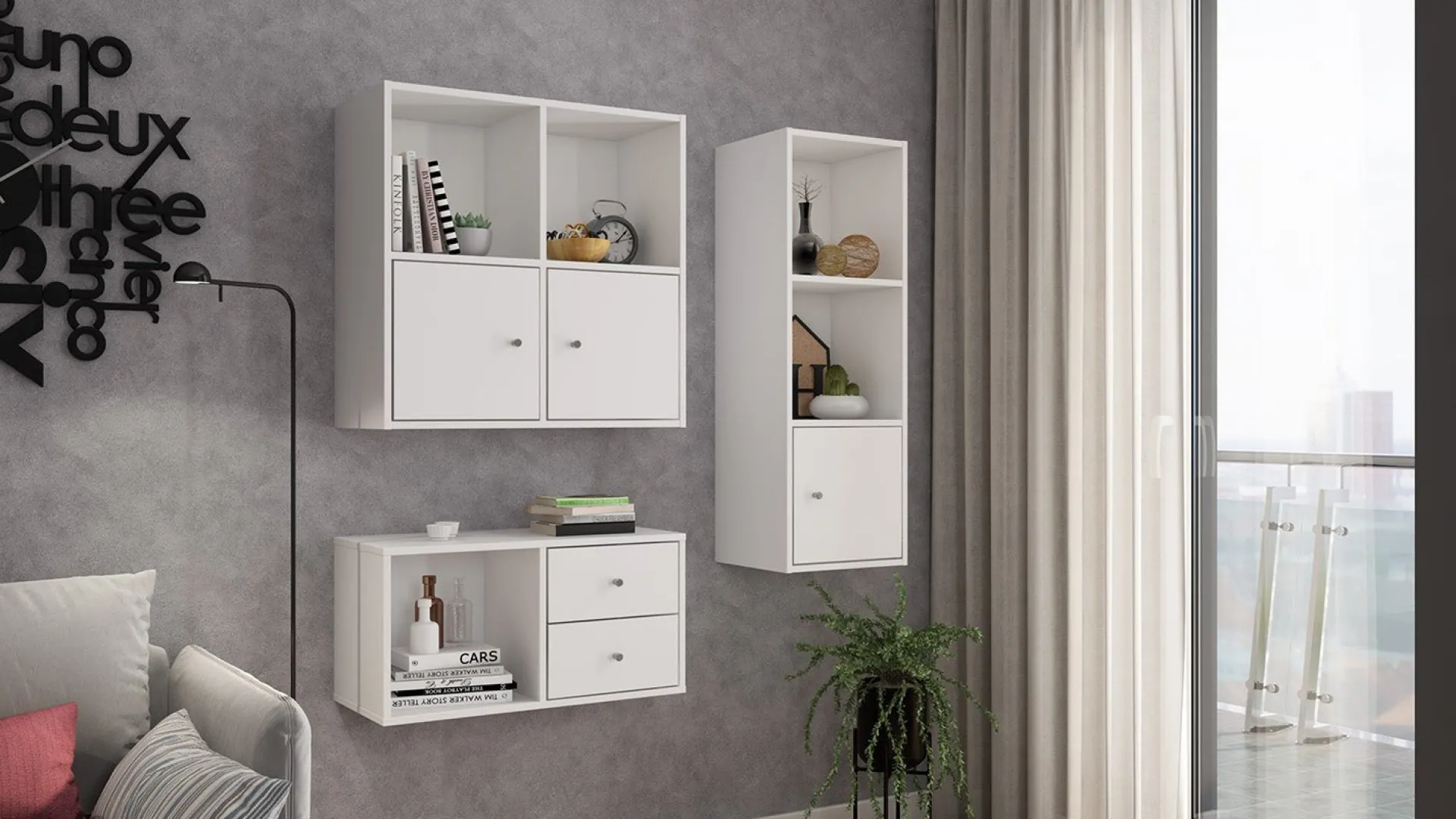 Flora hvide skuffer til vores væghængte reolsystemer.