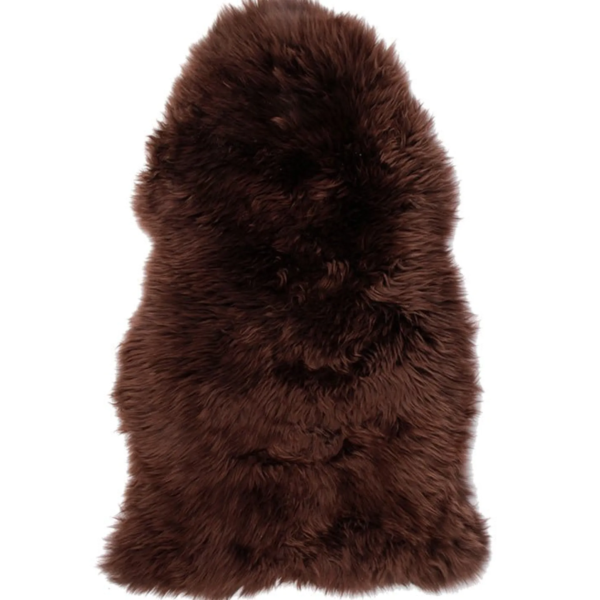 Ægte lammeskind i brun, 95×65 cm. Dette luksuriøse og bløde skind tilføjer varme og elegance til dit hjem, perfekt som tæppe, dekoration eller som ekstra komfort på møbler.