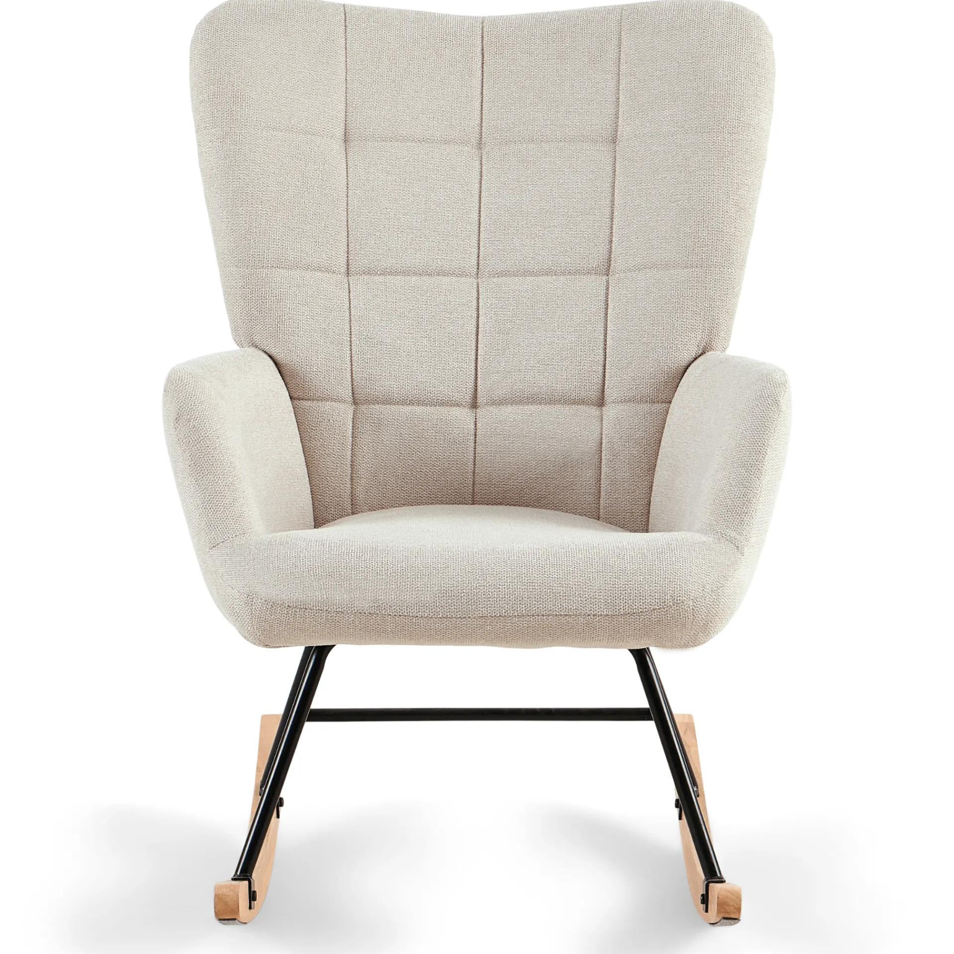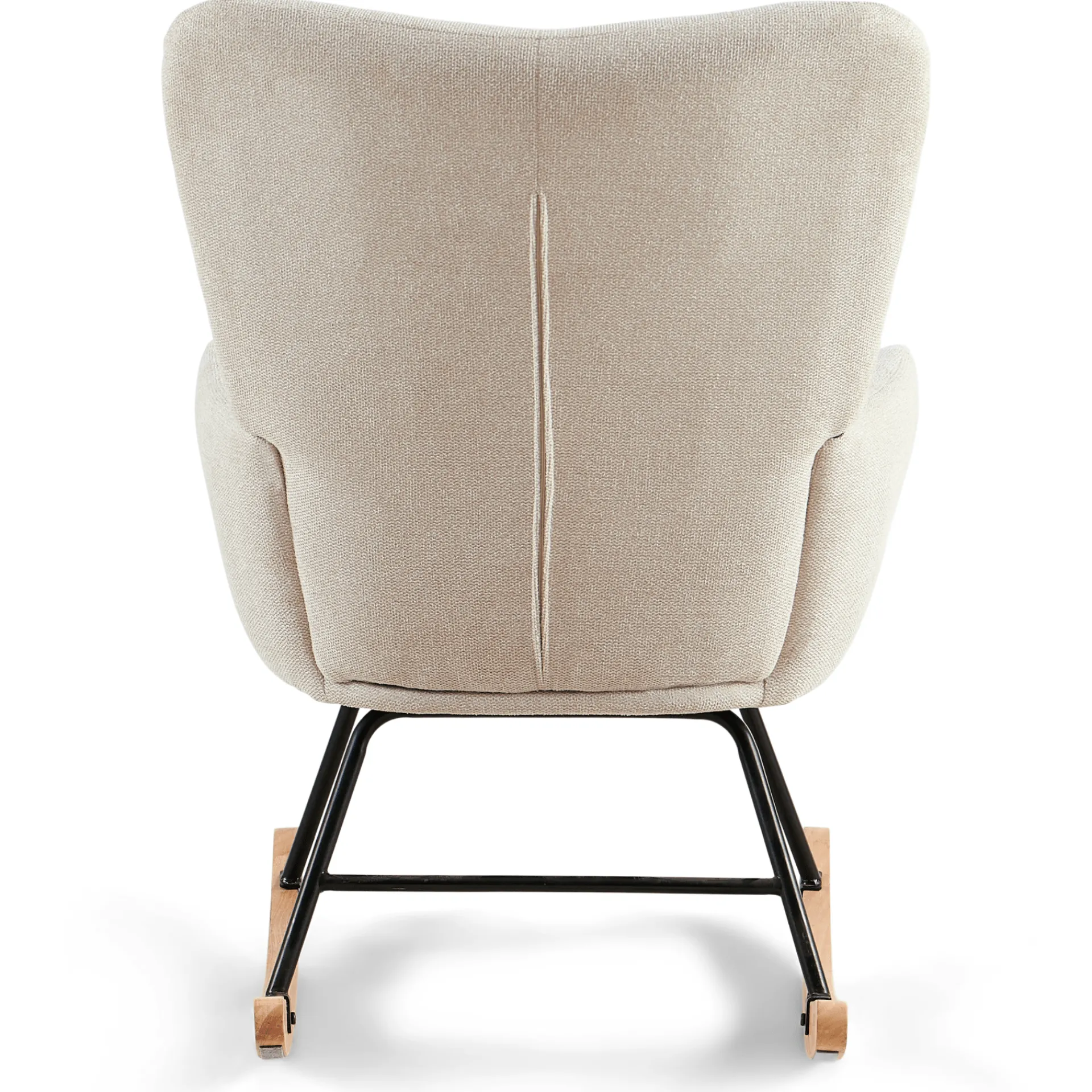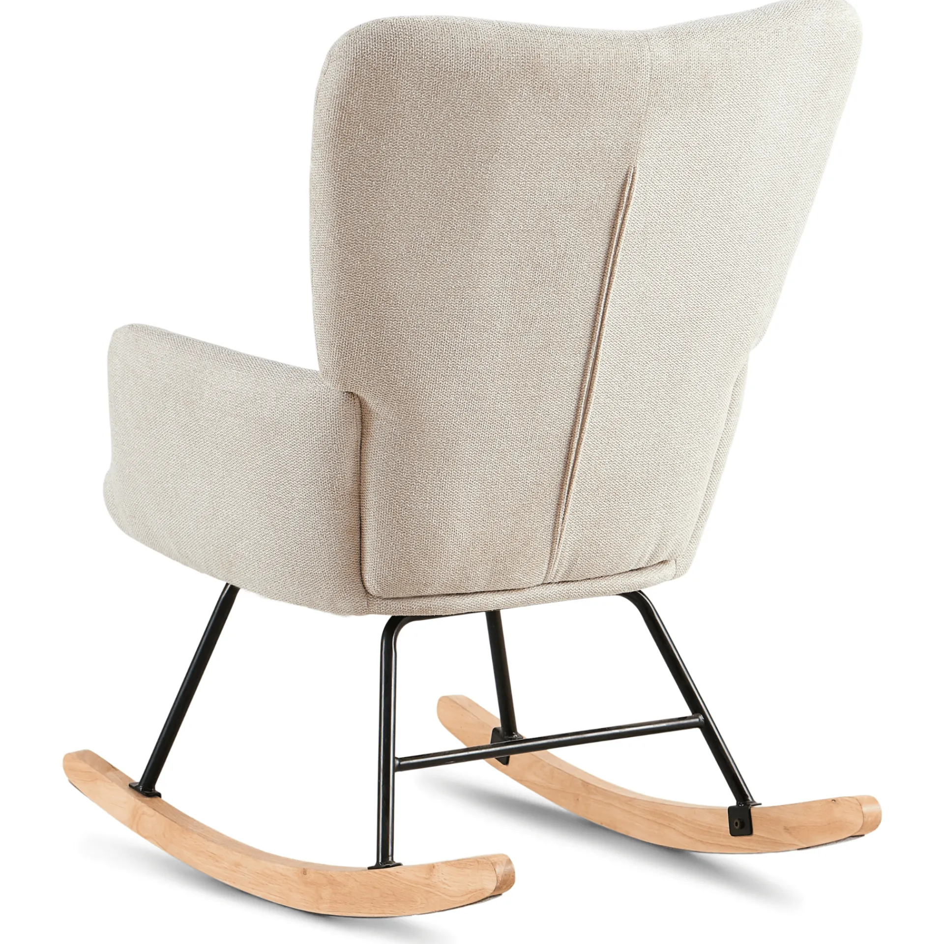Med sit skandinavisk-inspirerede udtryk passer den perfekt i stuer, soveværelser eller børneværelser. Den bløde, neutrale polstring sørger for en behagelig siddeoplevelse, mens den høje ryg og de polstrede armlæn giver god støtte. De let buede træben skaber en rolig, gyngende bevægelse, ideel til afslapning. Den robuste metalramme sikrer stabilitet og langvarig holdbarhed. Allison gyngestolen kombinerer funktion og stil på en enkel og indbydende måde.