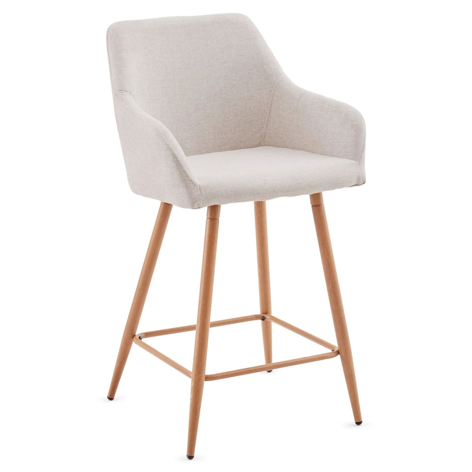 Jenna barstol – Beige tekstil med armlæn, 65 cm