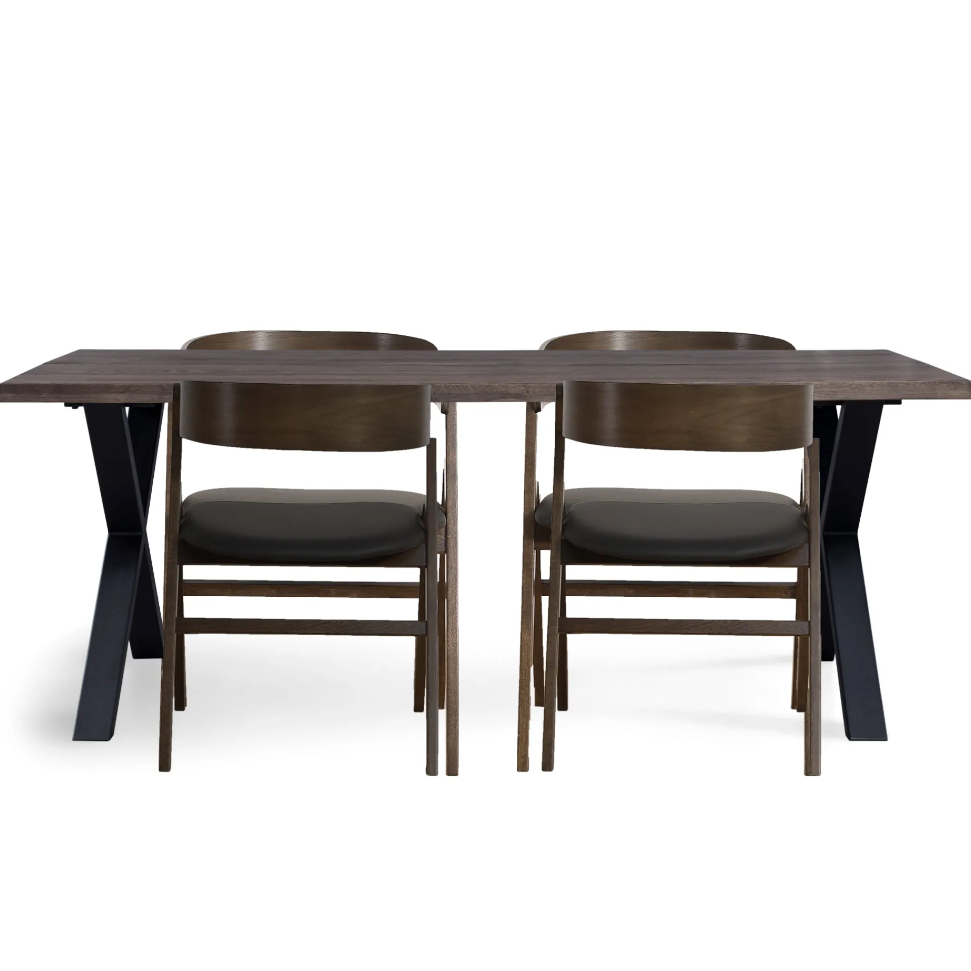 Spisebordssæt – Susan plankebord i røget eg 200 cm + 4 x Samantha spisebordsstole i røget eg med sort polstrede sæder