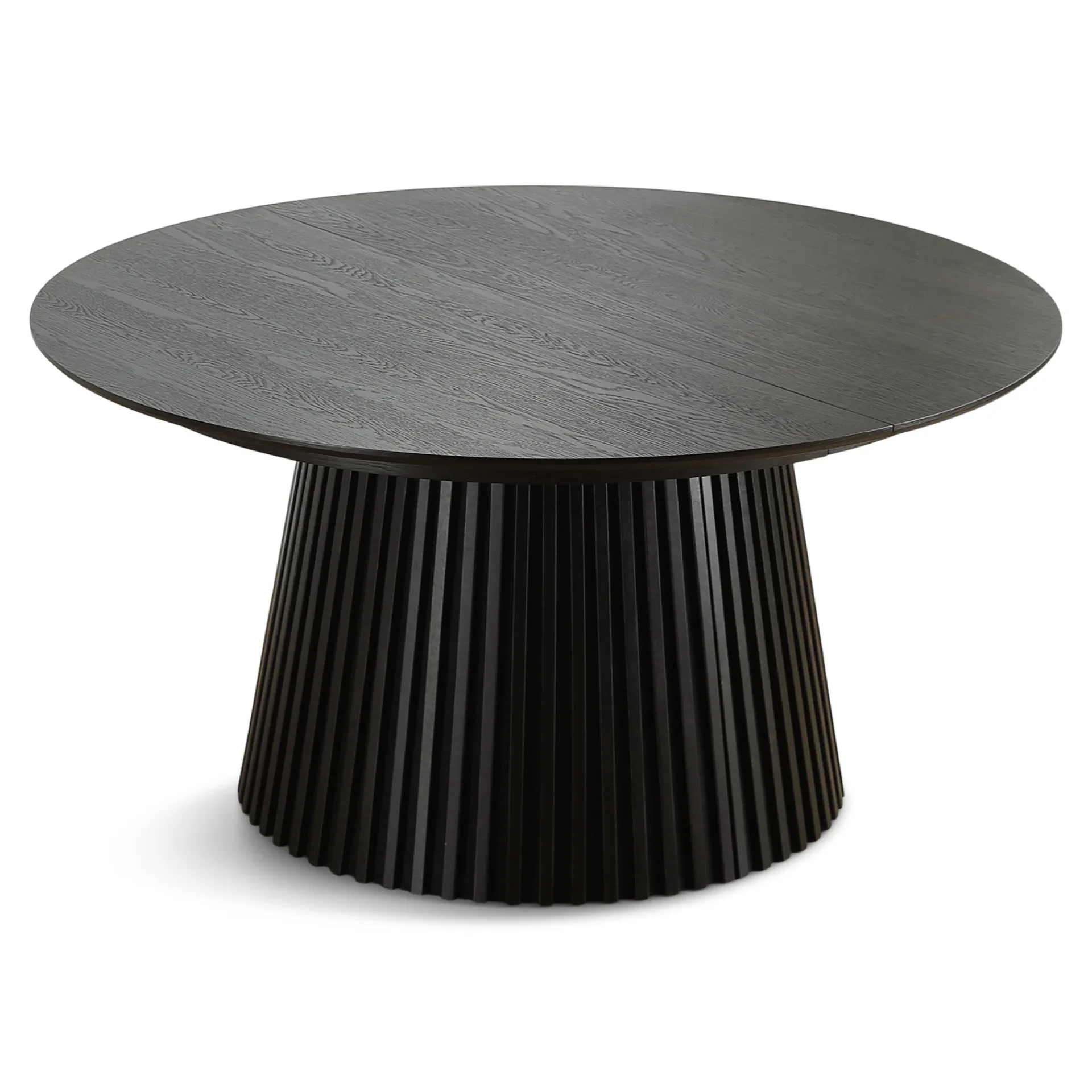 Har du brug for et bord, der passer godt til mindre rum uden at fylde for meget i hverdagen, samtidig med at der stadig er god plads til gæster? Så er Lewis lamel spisebord i sort egefiner det perfekte valg. Dette runde bord er skræddersyet til rum, hvor pladsen er knap, men udtrækket giver dig alligevel rig mulighed for at byde flere velkommen.