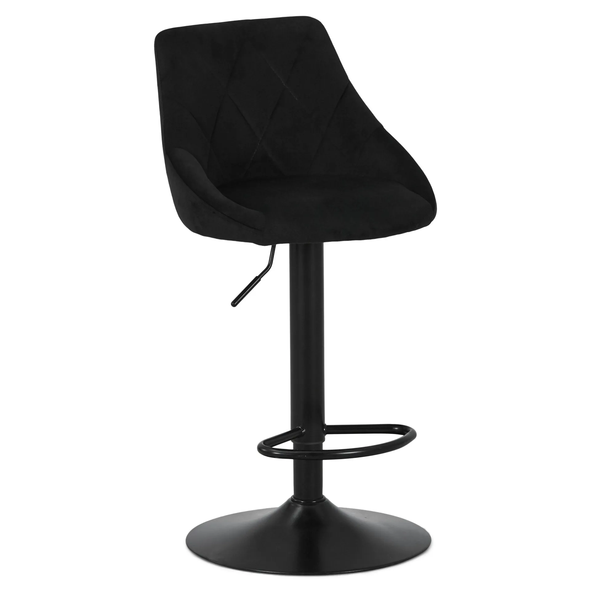 Cassie – Sort justerbar barstol i velour med 360° drejefunktion