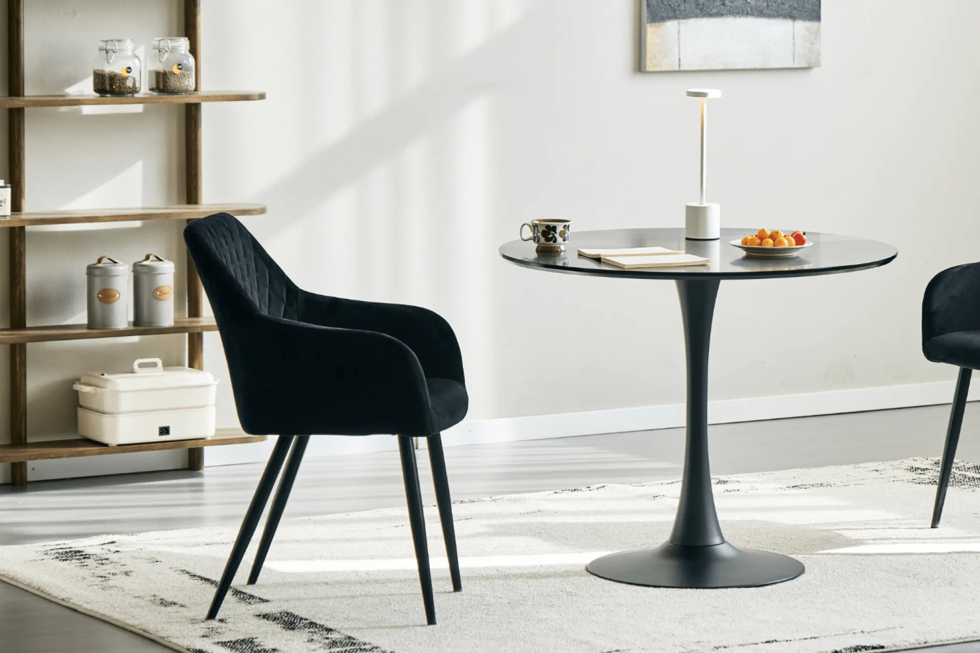 Trompetfoden er både stilfuld og stabil, hvilket sikrer et sikkert og solidt fundament. Bordpladen er lavet af høj kvalitet MDF, som gør den både let at rengøre og modstandsdygtig overfor ridser og pletter, hvilket gør bordet praktisk og holdbart. Dette Diego spisebord passer perfekt til mindre rum og kan rumme op til 4 spisebordsstole.