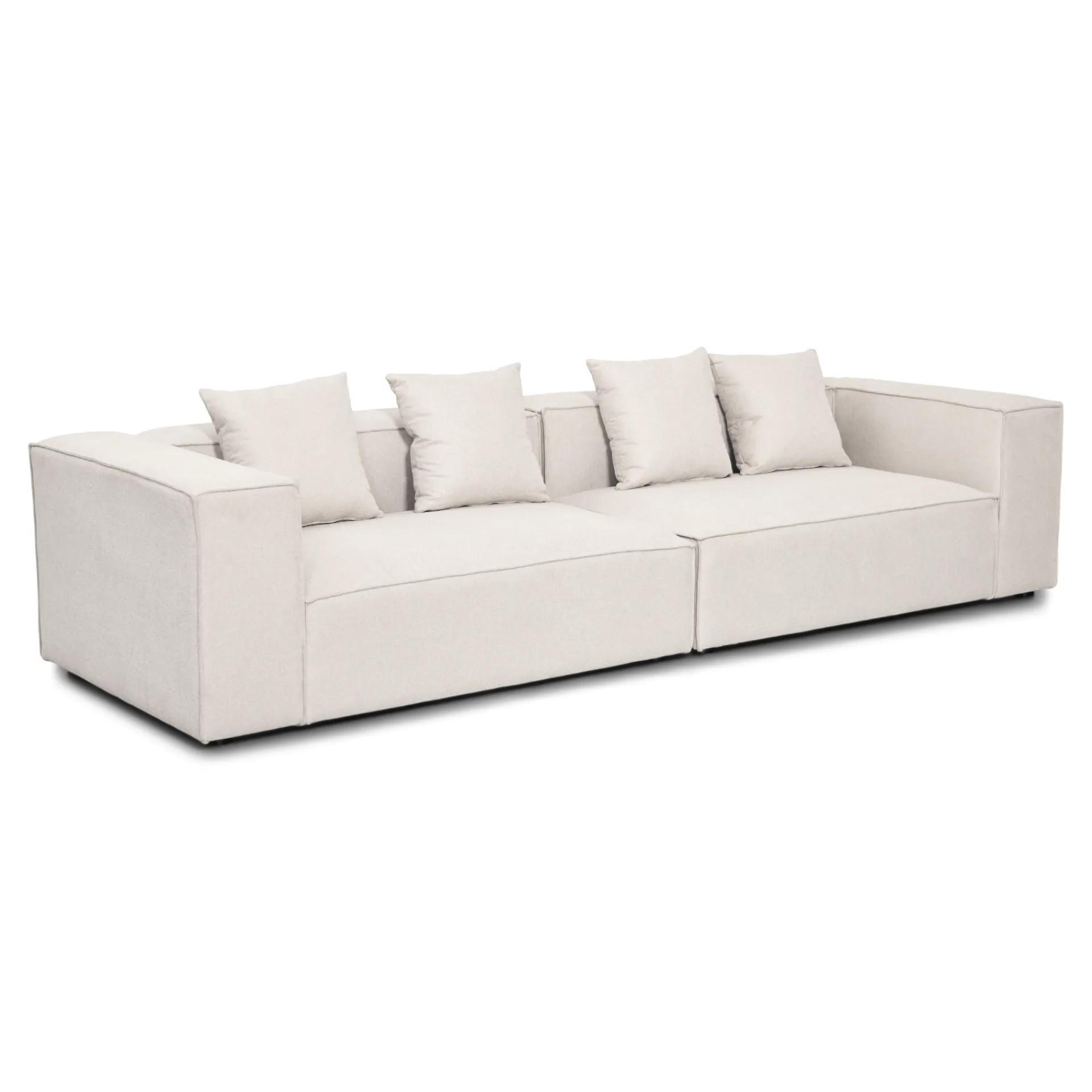 Med samlebeslag og ben, der allerede er monteret, er sofaen klar til brug med det samme. Den leveres i moduler, som er nemme at samle, så du hurtigt og let kan arrangere din sofa efter eget ønske. Denne beige modulsofa er et fleksibelt og stilfuldt valg til ethvert hjem, der tilbyder både komfort og æstetik.
