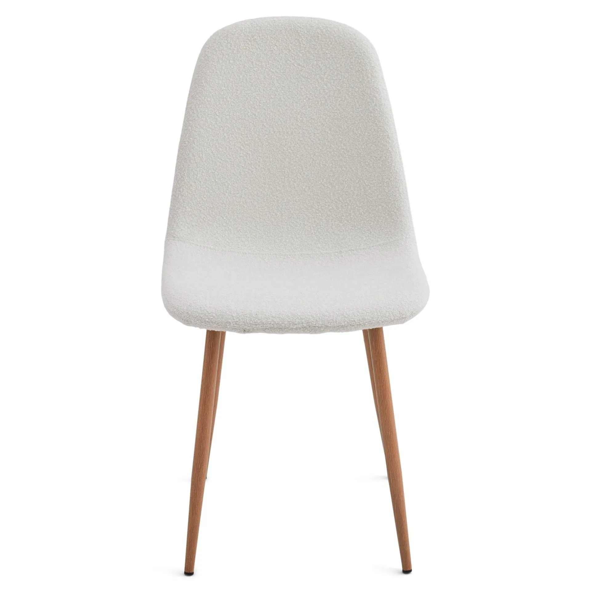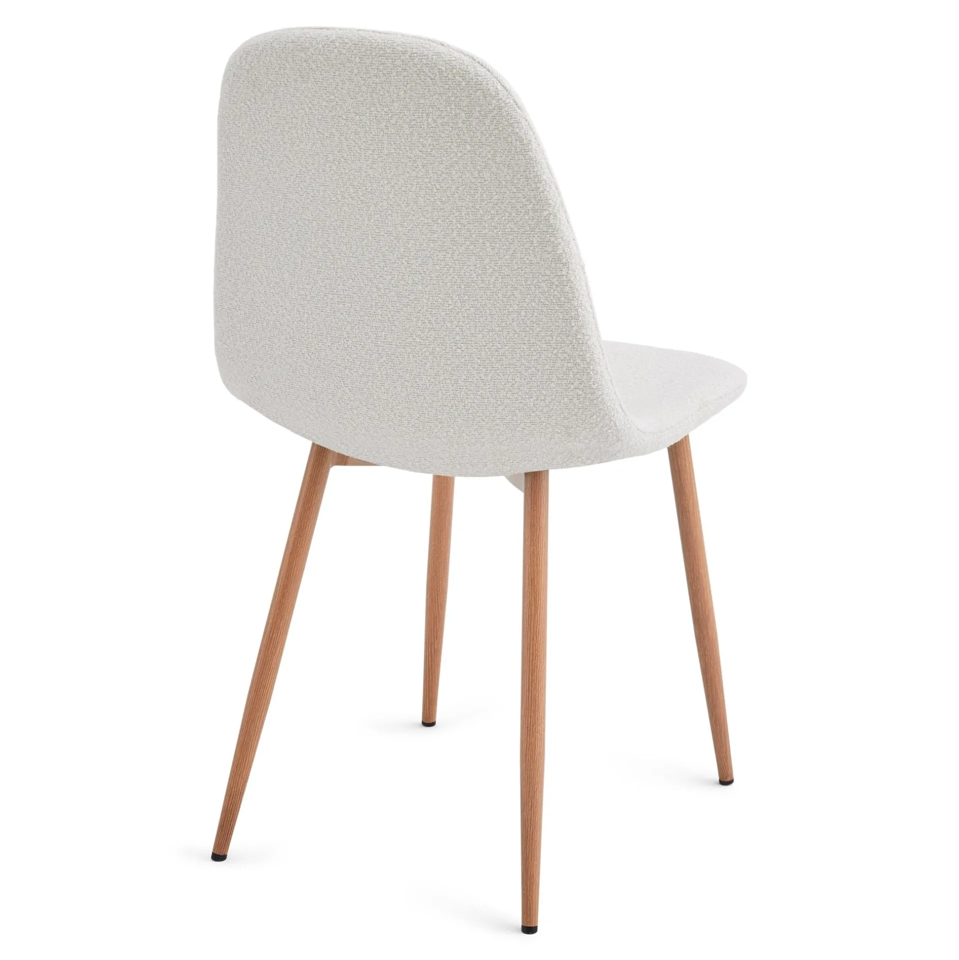 Stolen har ben i røget egelook, som giver både stabilitet og holdbarhed, mens det hvide bouclé-betræk på sædet tilfører et blødt, lyst og tidløst udtryk.
