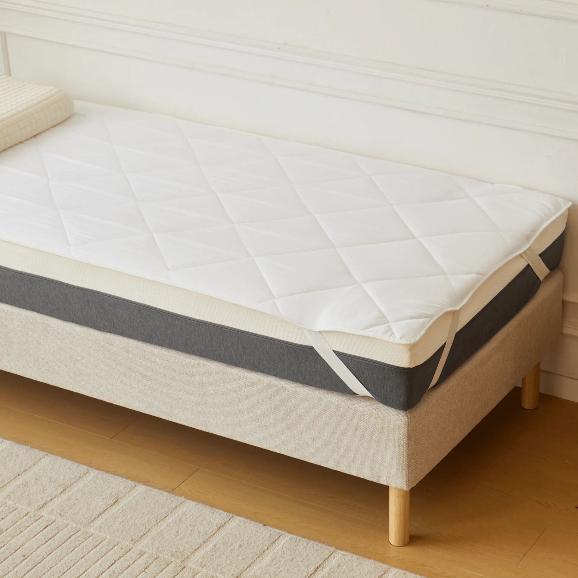 Opgrader din sovekomfort med denne quiltede hvide rullemadras, det ideelle valg til at beskytte din madras og give et ekstra lag blødhed.