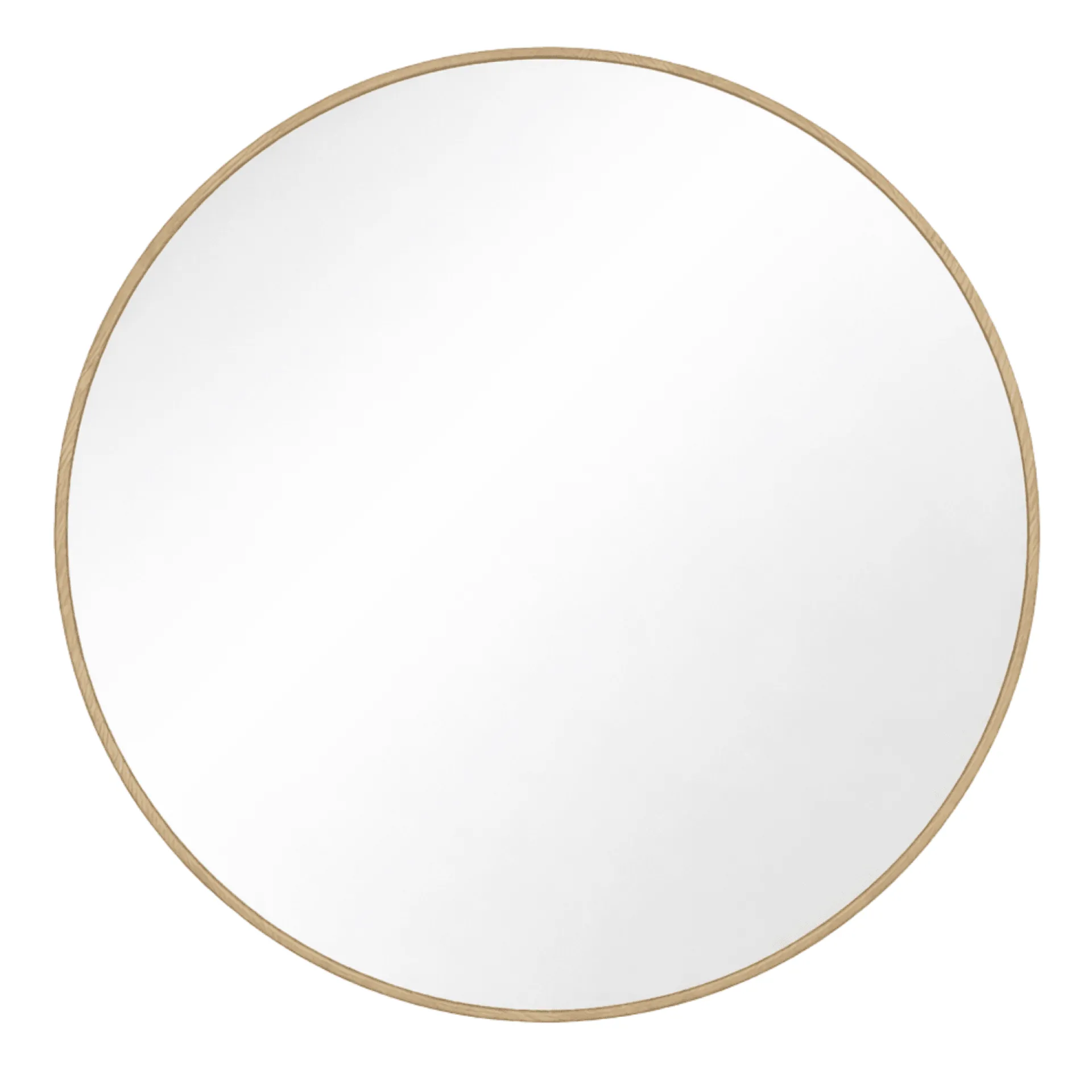 Rundt spejl med træramme i eg