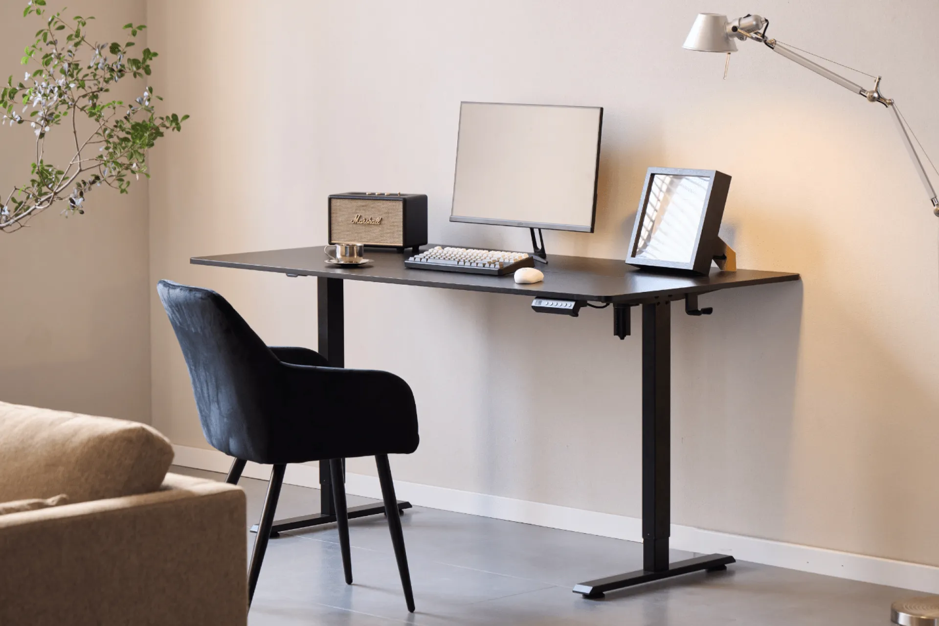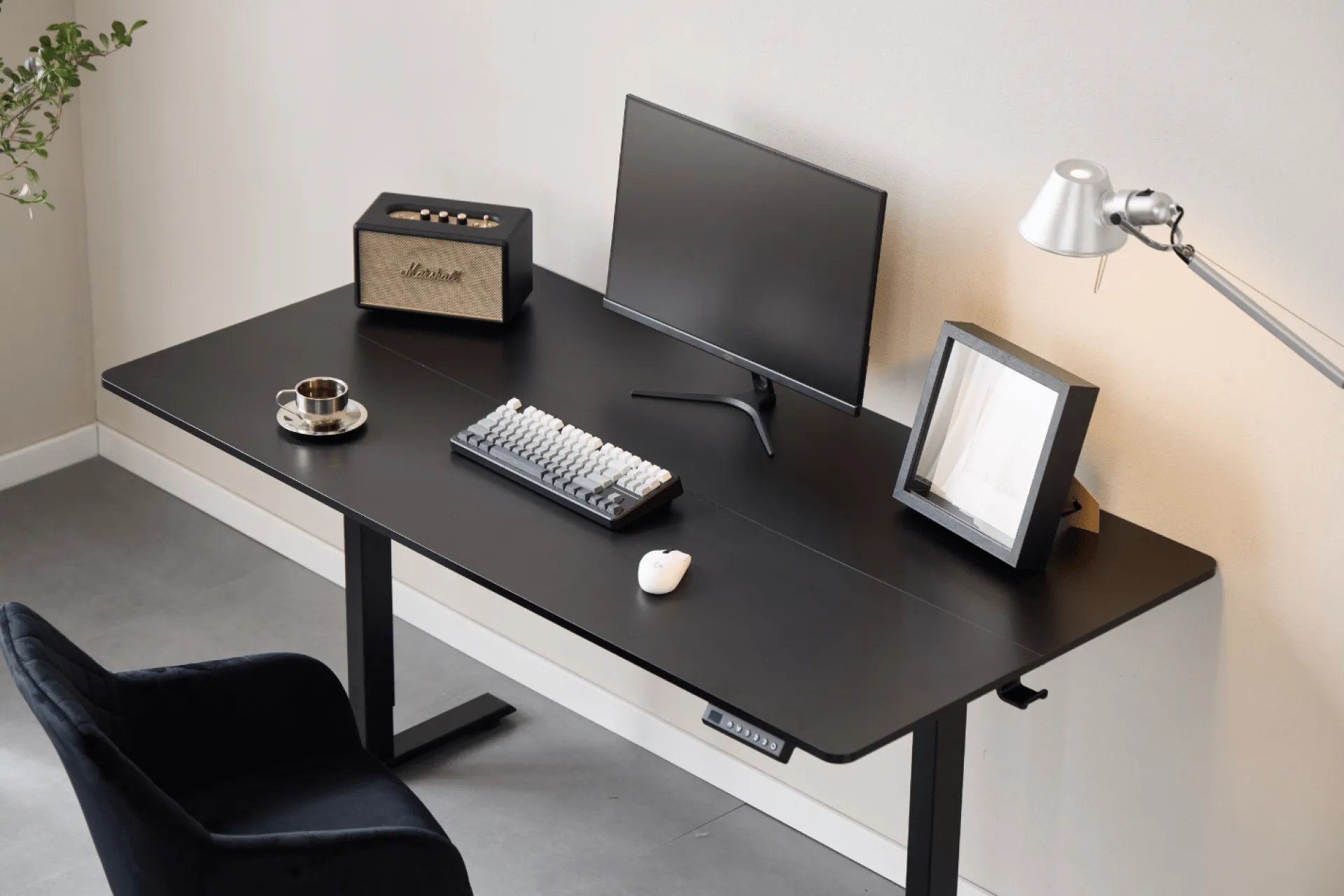 Med den støjsvage elektriske motor kan du nemt justere højden med et tryk på betjeningspanelet. Bordet justeres fra 72 til 117 cm i højden, men har også en memory funktion, hvor den husker dine 3 favorit højder. Bordet hæves og sænkes med 2 cm i sekundet. Bordet er udstyret med et anti-kollision system, som beskytter bordet mod skader ved automatisk at stoppe og køre let tilbage, hvis det registrerer modstand under hævning eller sænkning.