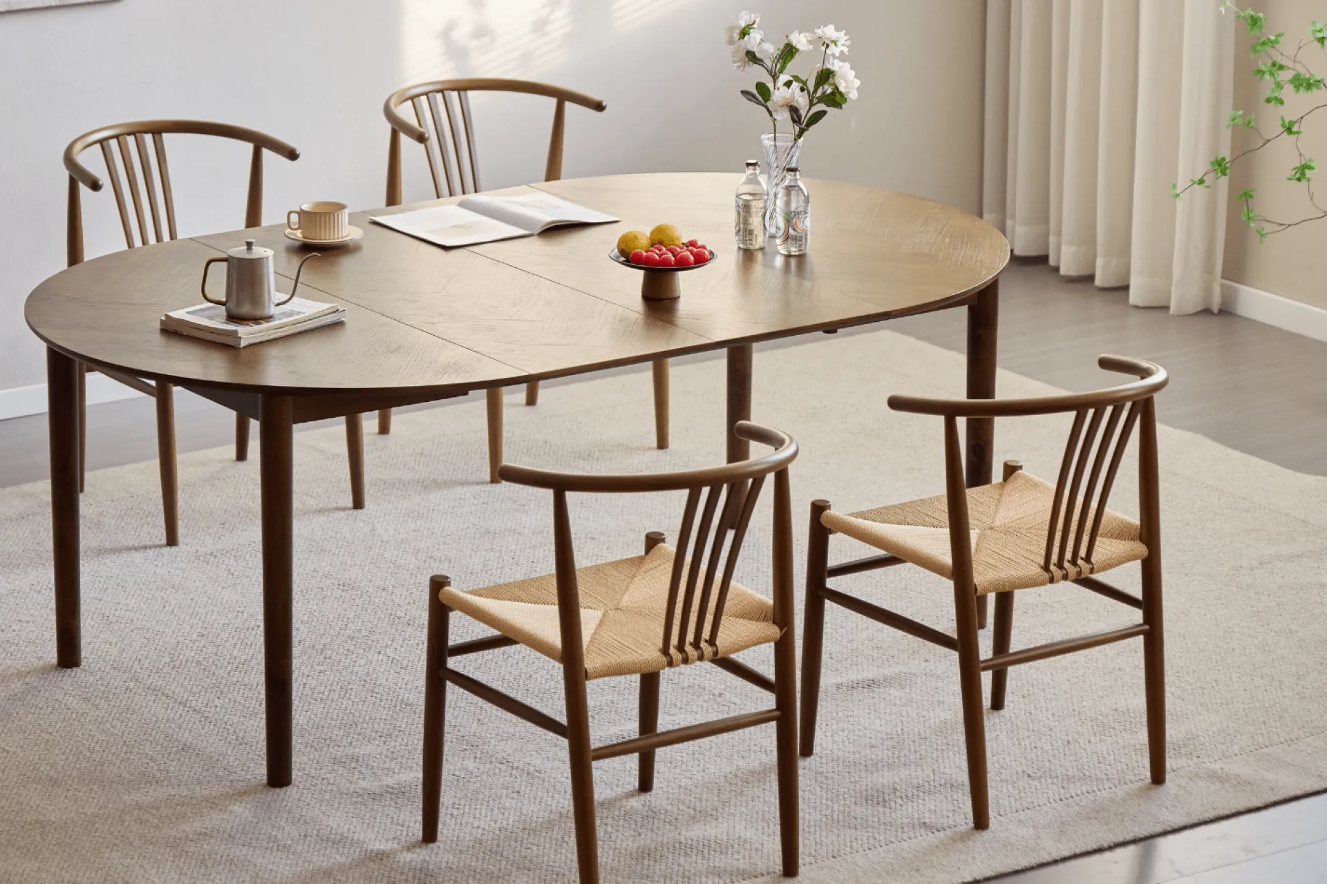 Bordet fås i to smukke varianter: røget egefiner og lys egefiner – så du kan vælge det udtryk, der passer bedst til dit hjem og din stil.