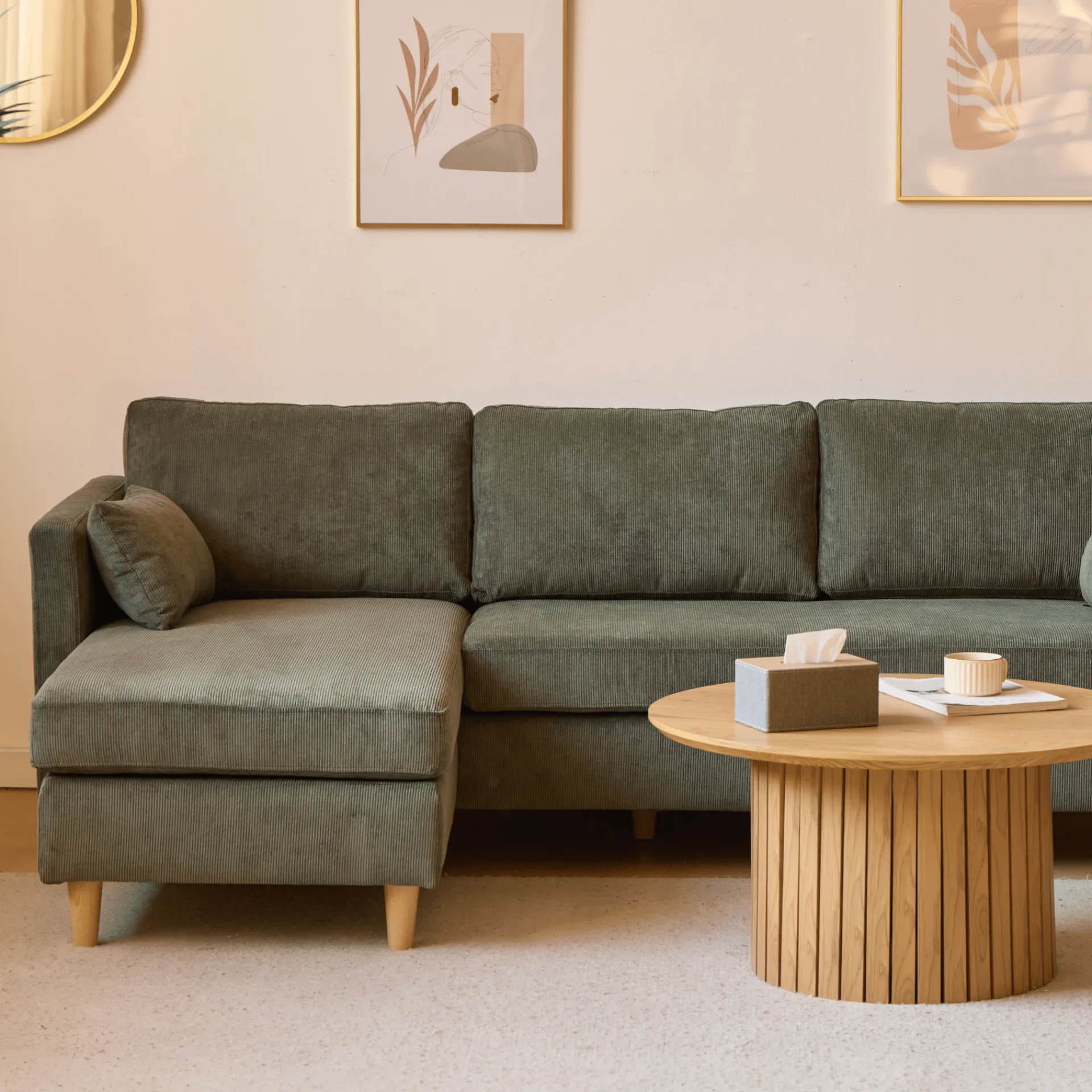 Denne elegante sofa i fløjl er det perfekte møbel til dig, der ønsker komfort og stil kombineret. Med en vendbar chaiselong kan du nemt tilpasse sofaen til dit rum og dine behov, hvad enten du foretrækker en højrevendt eller venstrevendt opsætning. Sofaens dimensioner på L: 215 cm, D: 82 cm og H: 78 cm sikrer en rummelig og behagelig siddeoplevelse.
