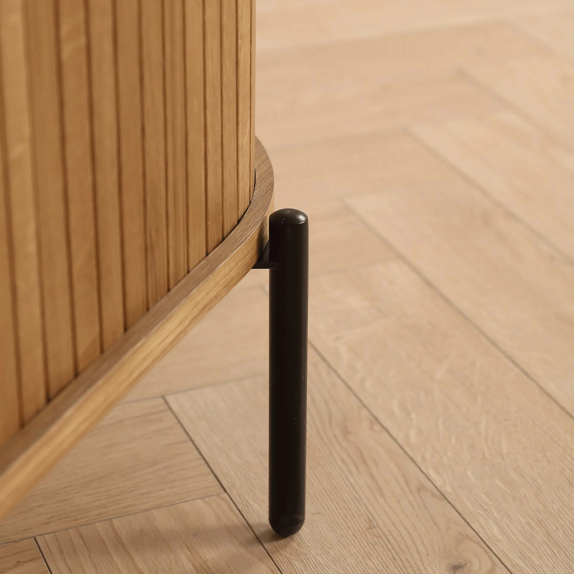 Dette elegante lamelskab er fremstillet i naturlig eg, hvilket giver det et klassisk og tidløst udseende, der passer perfekt ind i enhver boligindretning. Skabet måler 70x40x85 cm, hvilket gør det ideelt til små rum, hvor opbevaring er nødvendig uden at gå på kompromis med stilen.