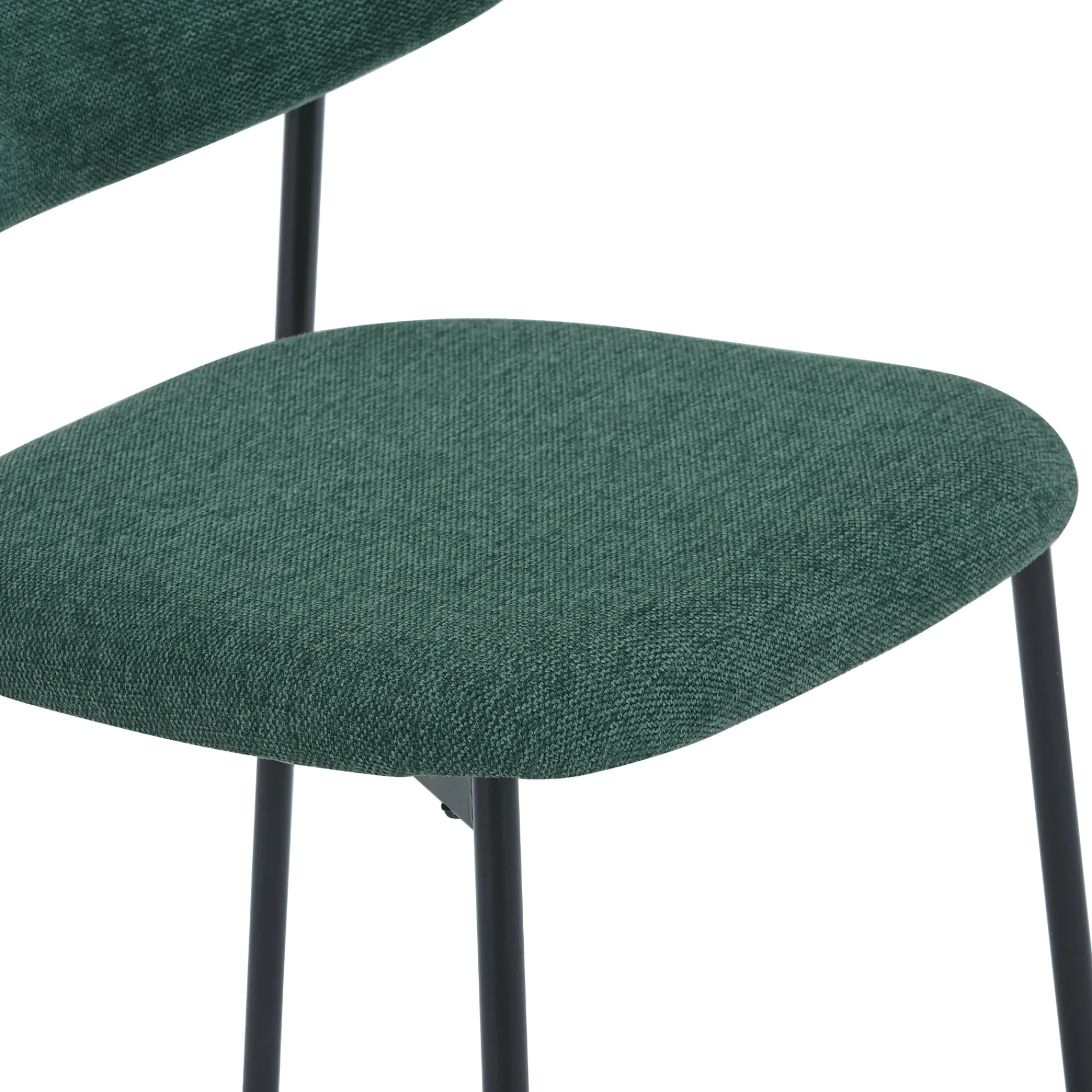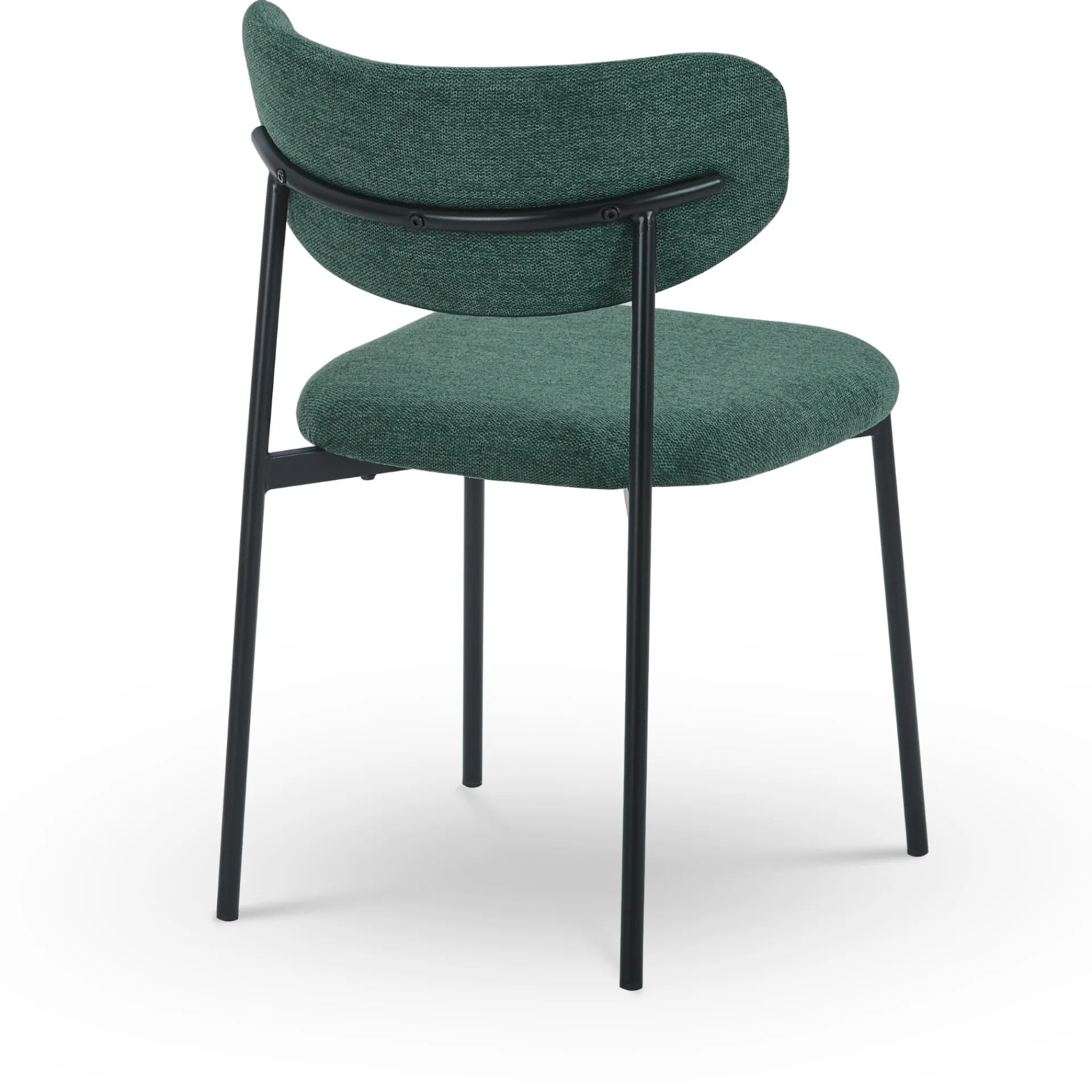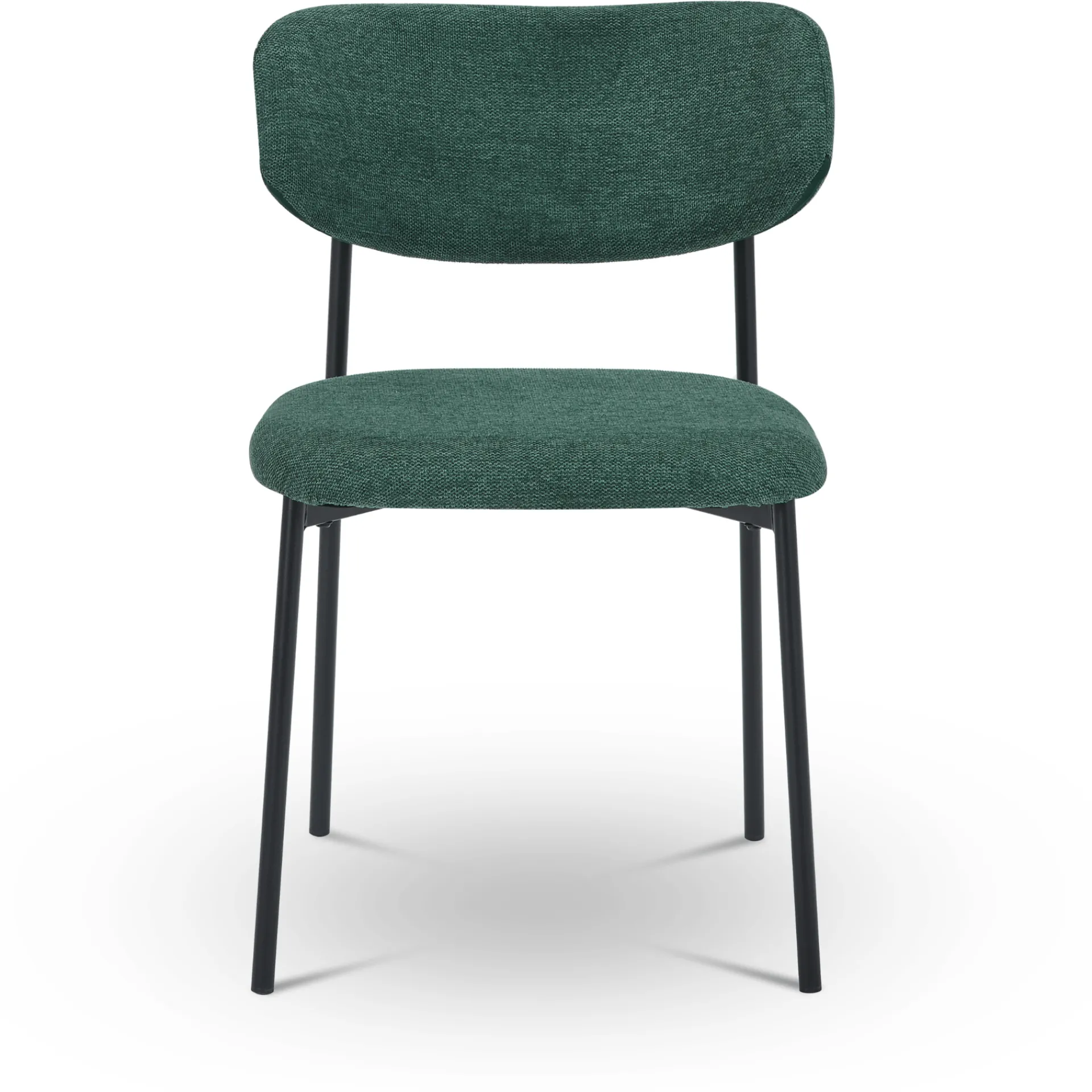 Lucinda spisebordsstolen kombinerer moderne design med komfort. Den er polstret i et blødt, grønt tekstil og har en elegant, rundet ryg, der giver god støtte. De sorte metalben skaber en smuk kontrast til det bløde stof, hvilket giver stolen et stilfuldt og tidløst udtryk. Denne stol er ideel til både spisebordet og som ekstra siddeplads i hjemmet og vil tilføre et strejf af elegance til ethvert rum.