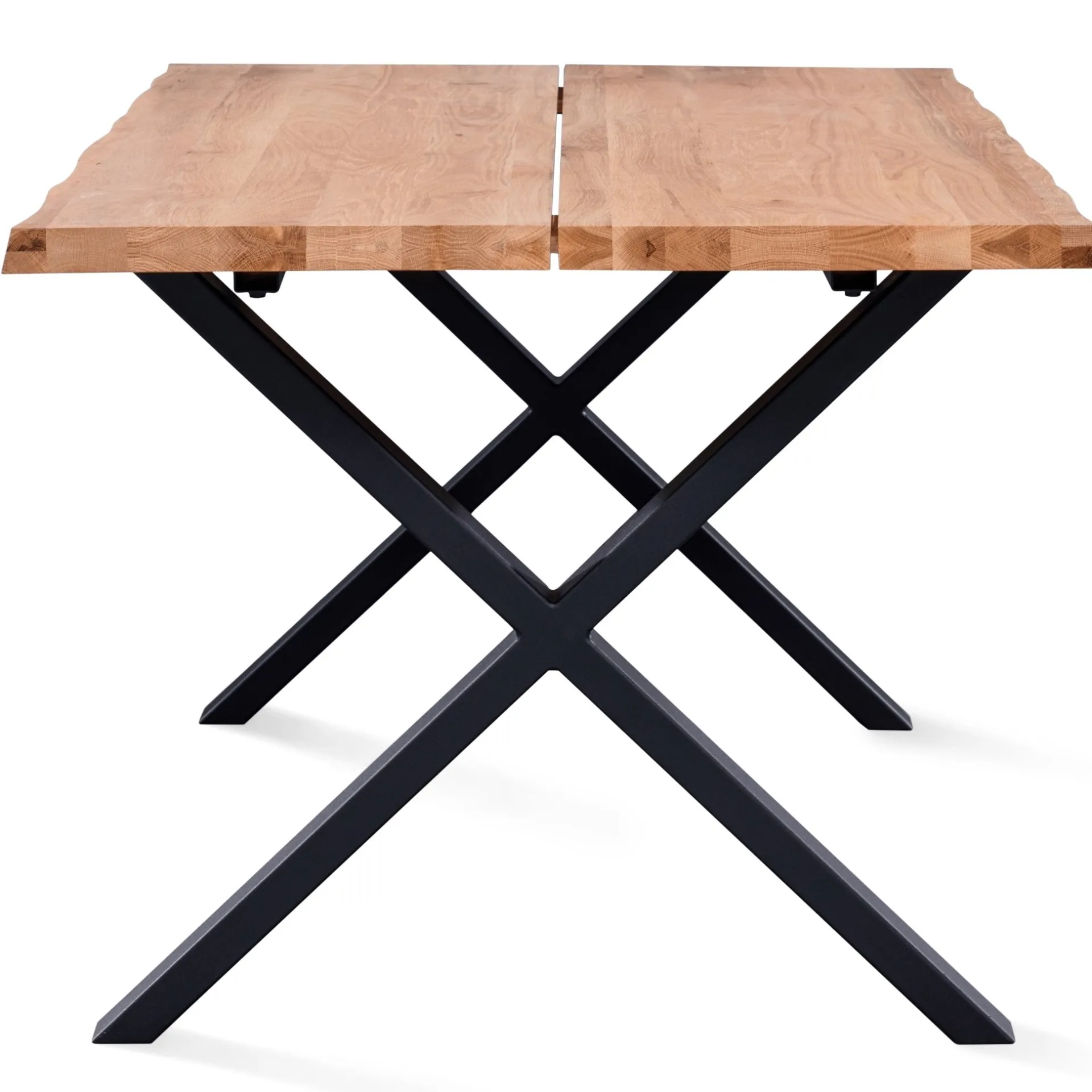 Dette Susan spisebord med 2 planker og sorte krydsben i metal måler 200 cm i længden, hvilket giver plads til at have 3 stole stående på hver side.