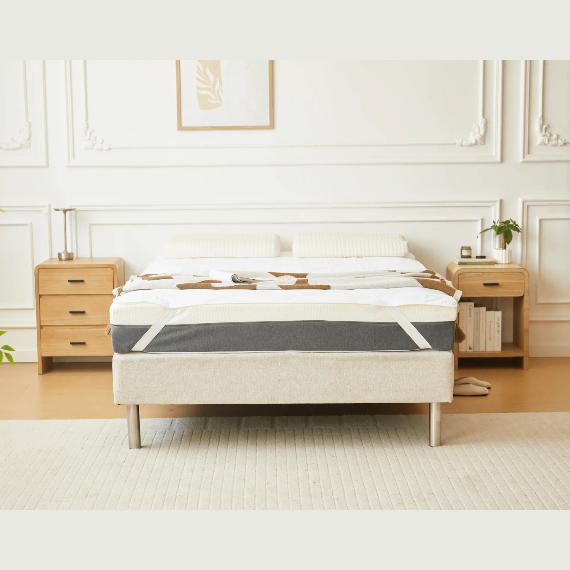 Opgrader din sovekomfort med denne quiltede hvide rullemadras, det ideelle valg til at beskytte din madras og give et ekstra lag blødhed.