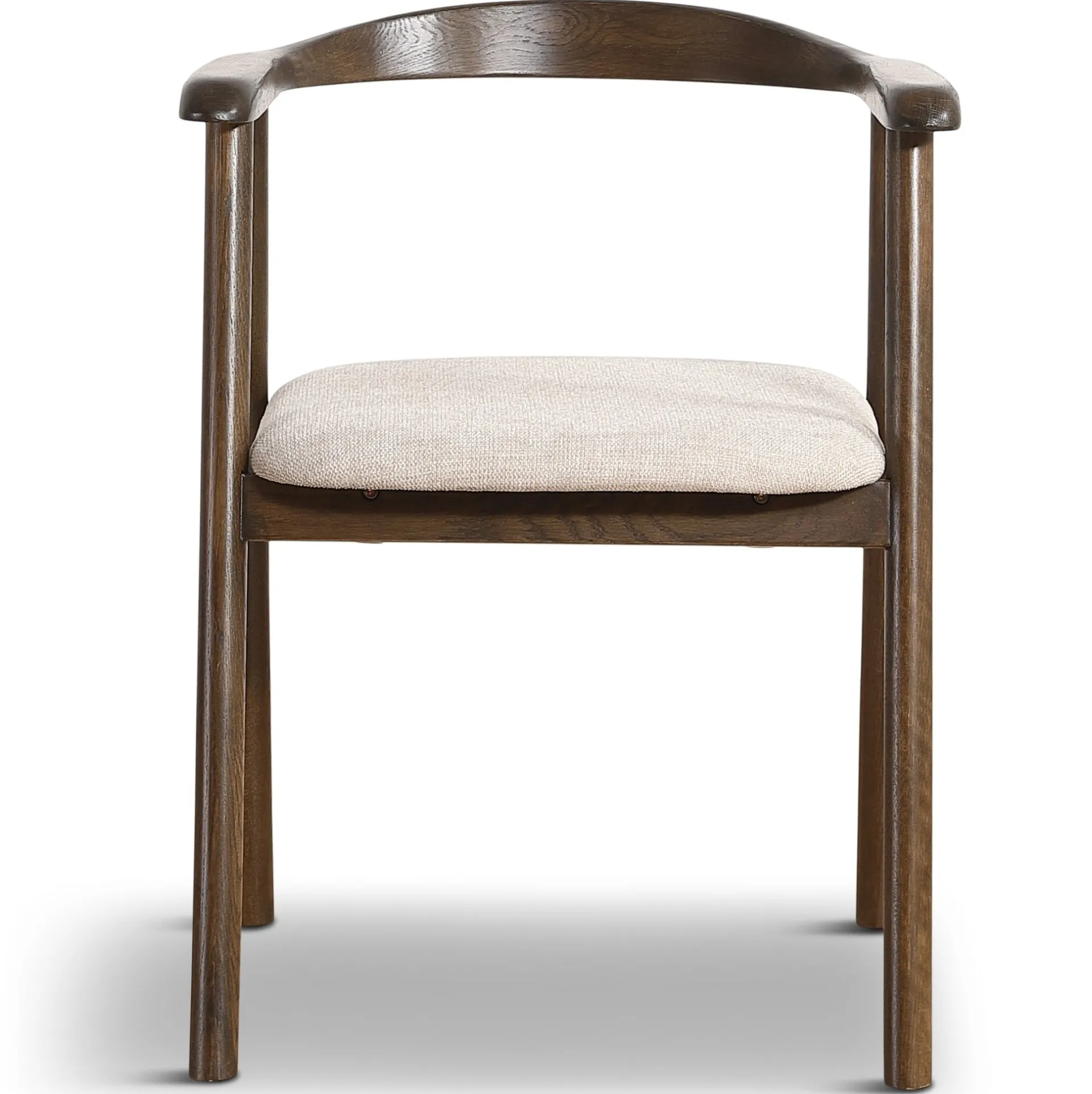 De fire Jocelyn spisebordsstole i røget eg har et let og stilrent design med blødt, polstret sæde i beige.