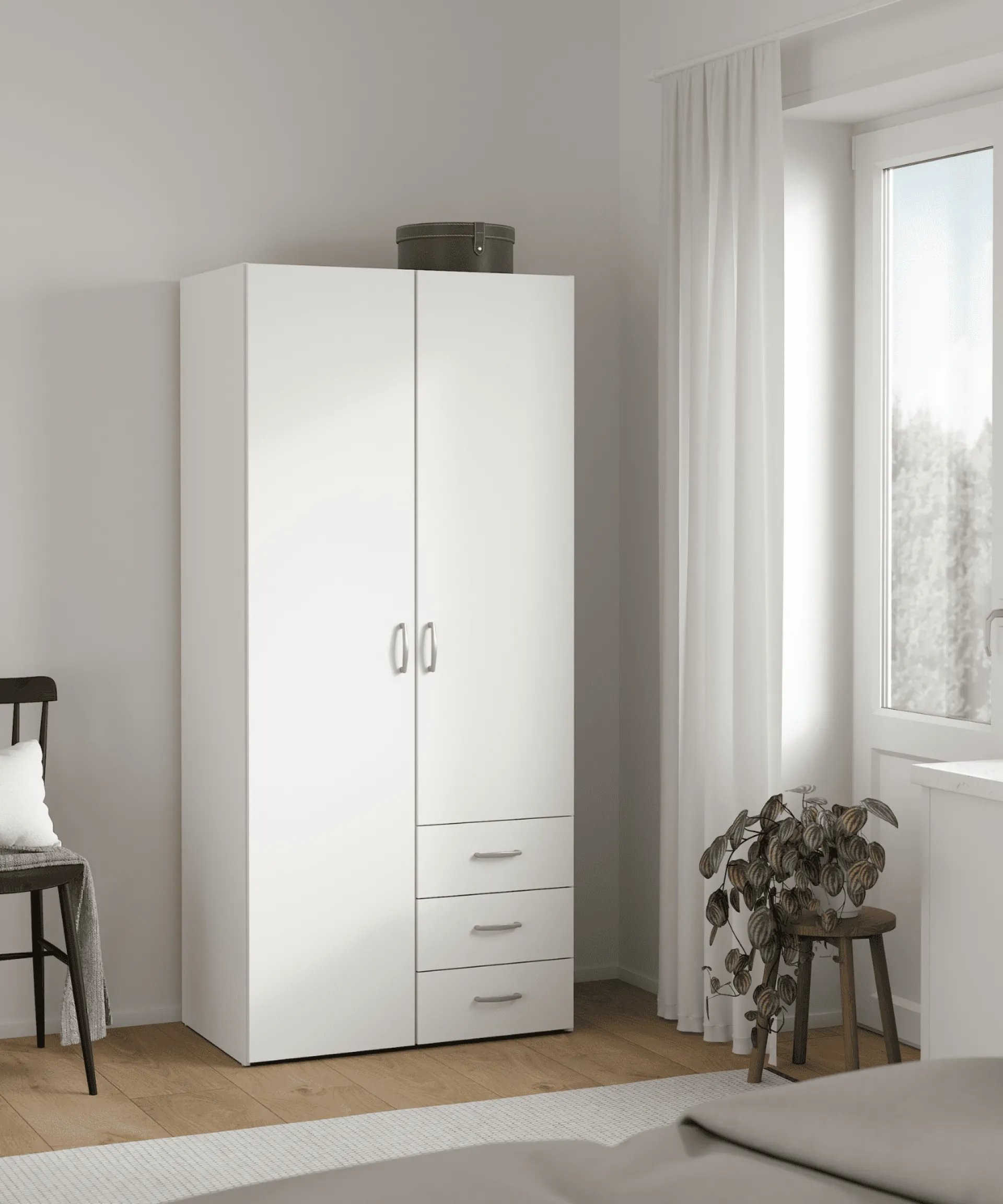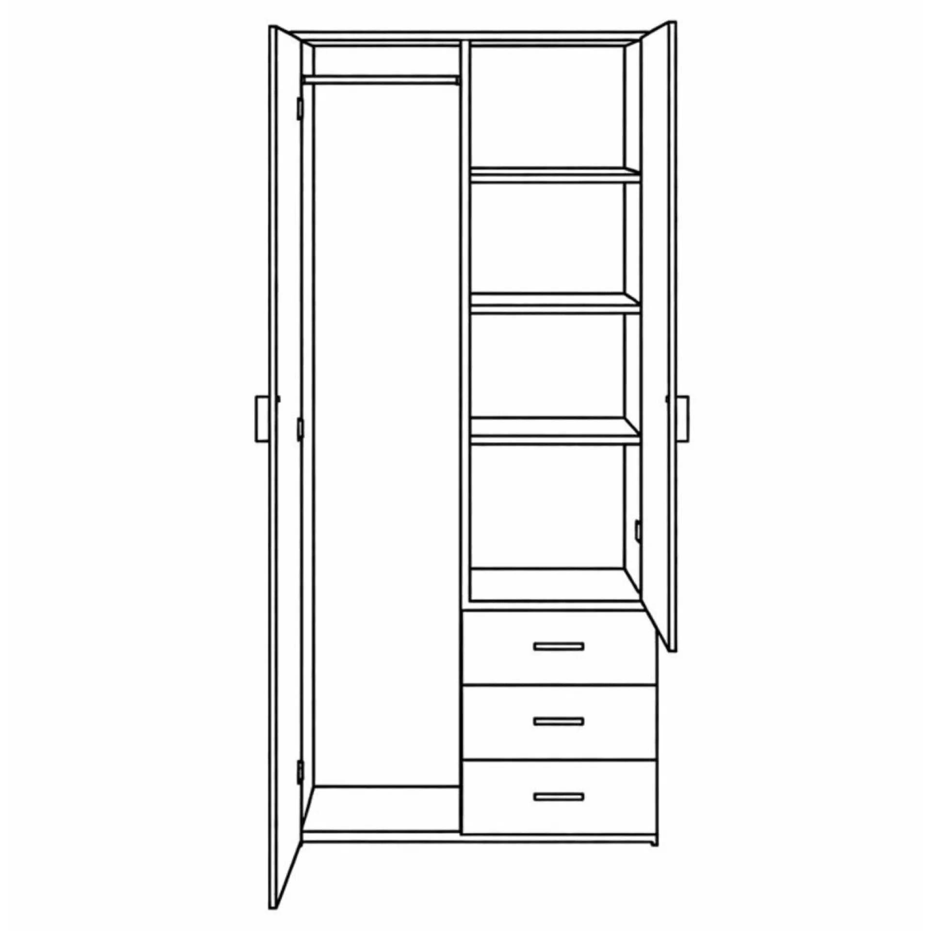 Malia er et stilrent og funktionelt skab, der passer perfekt til ethvert hjem. Skabet fås i to størrelser og to farver, hvid og røget eg. Skabet har et klassisk design med enkel opdeling, der giver masser af opbevaringsplads til både tøj og andre accessories.