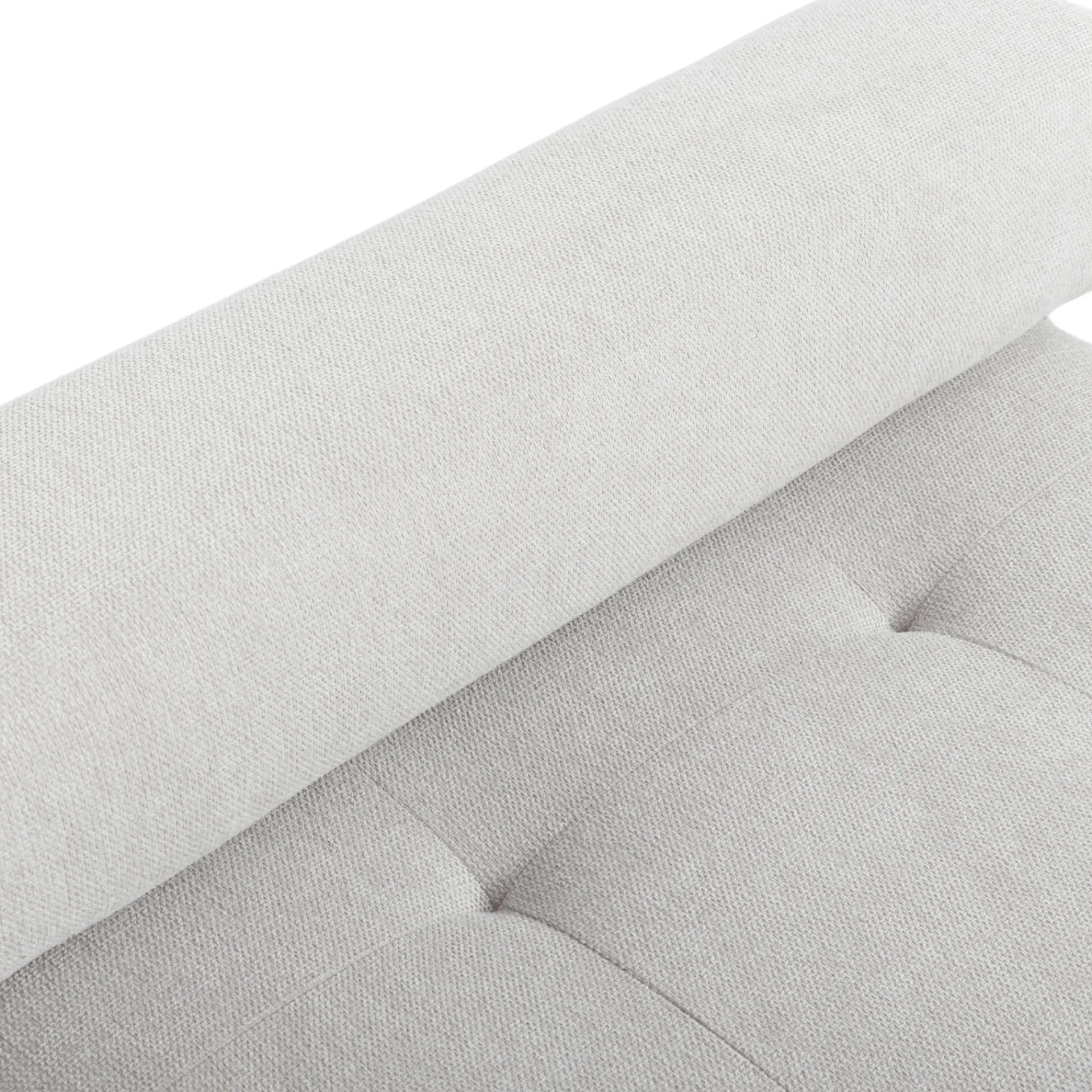 Denne unikke daybed er skabt med stofpolstring i en indbydende flot beige farve, der giver ethvert rum en rolig og afslappende stemning. Med sit moderne design og komfortable opbygning er denne daybed ideel til både afslapning og som en ekstra soveplads eller siddeplads. Daybeden er udstyret med en tilhørende nakkestøtte i samme farve, hvilket yder ekstra komfort og støtte.