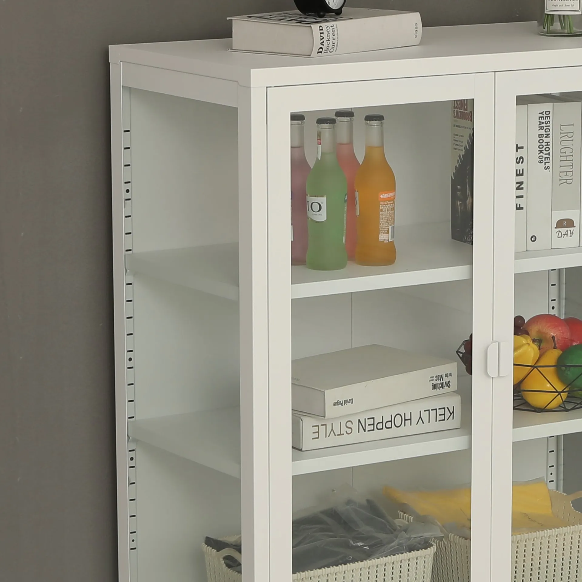 Vitrineskabet er udstyret med 3 hylder, der giver plads til flere genstande og holder dem organiseret. Hver hylde er stærk nok til at bære vægten af tunge genstande og kan nemt justeres for at imødekomme genstande af forskellige størrelser. Den åbne konstruktion giver en let adgang, hvilket gør det nemt at arrangere og reorganisere dine udstillede genstande..
