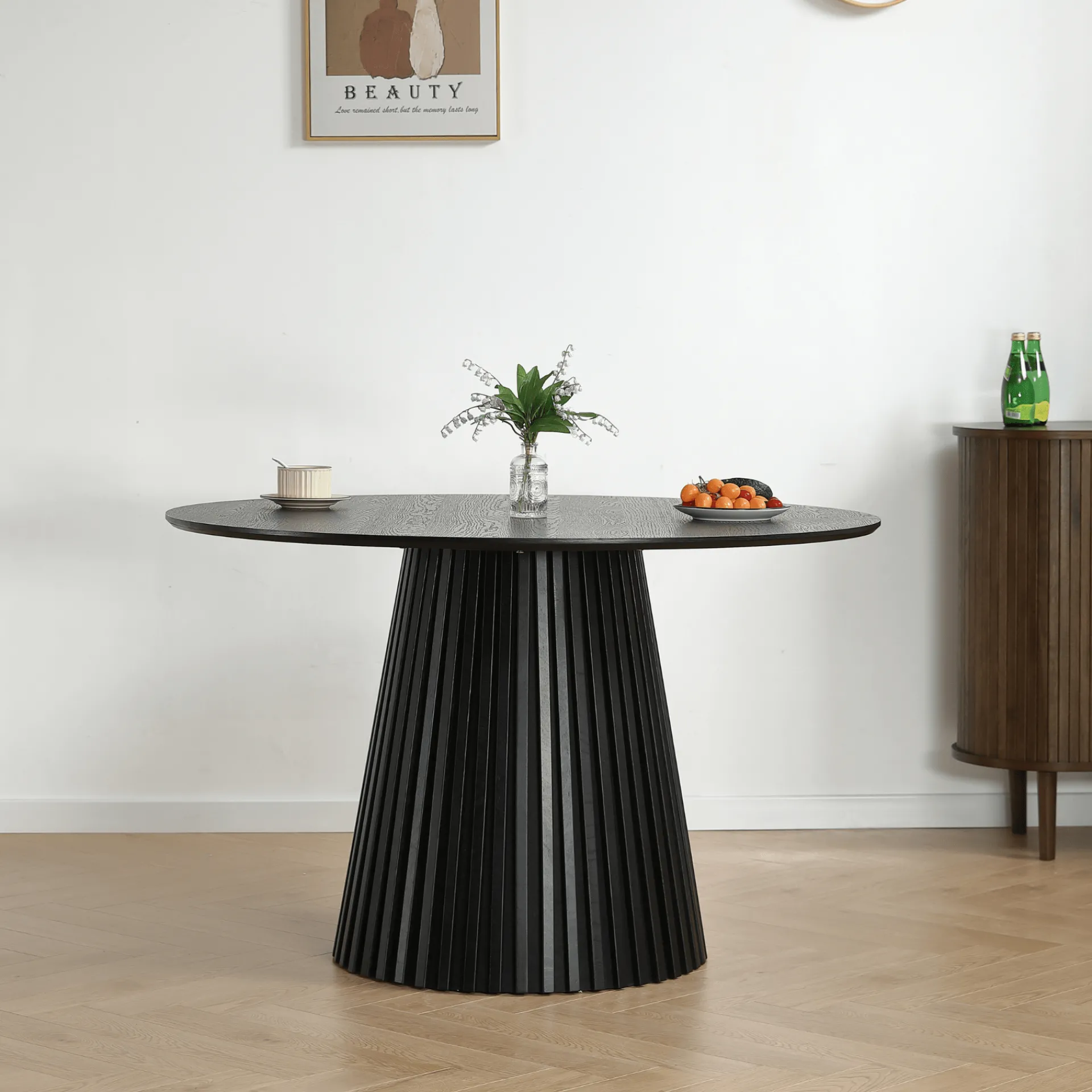 Har du brug for et bord, der passer godt til mindre rum, samtidig med at der stadig er god plads til gæster? Så er Lewis lamel spisebord i sort egefiner det perfekte valg. Dette runde bord er skræddersyet til rum, hvor pladsen er knap.