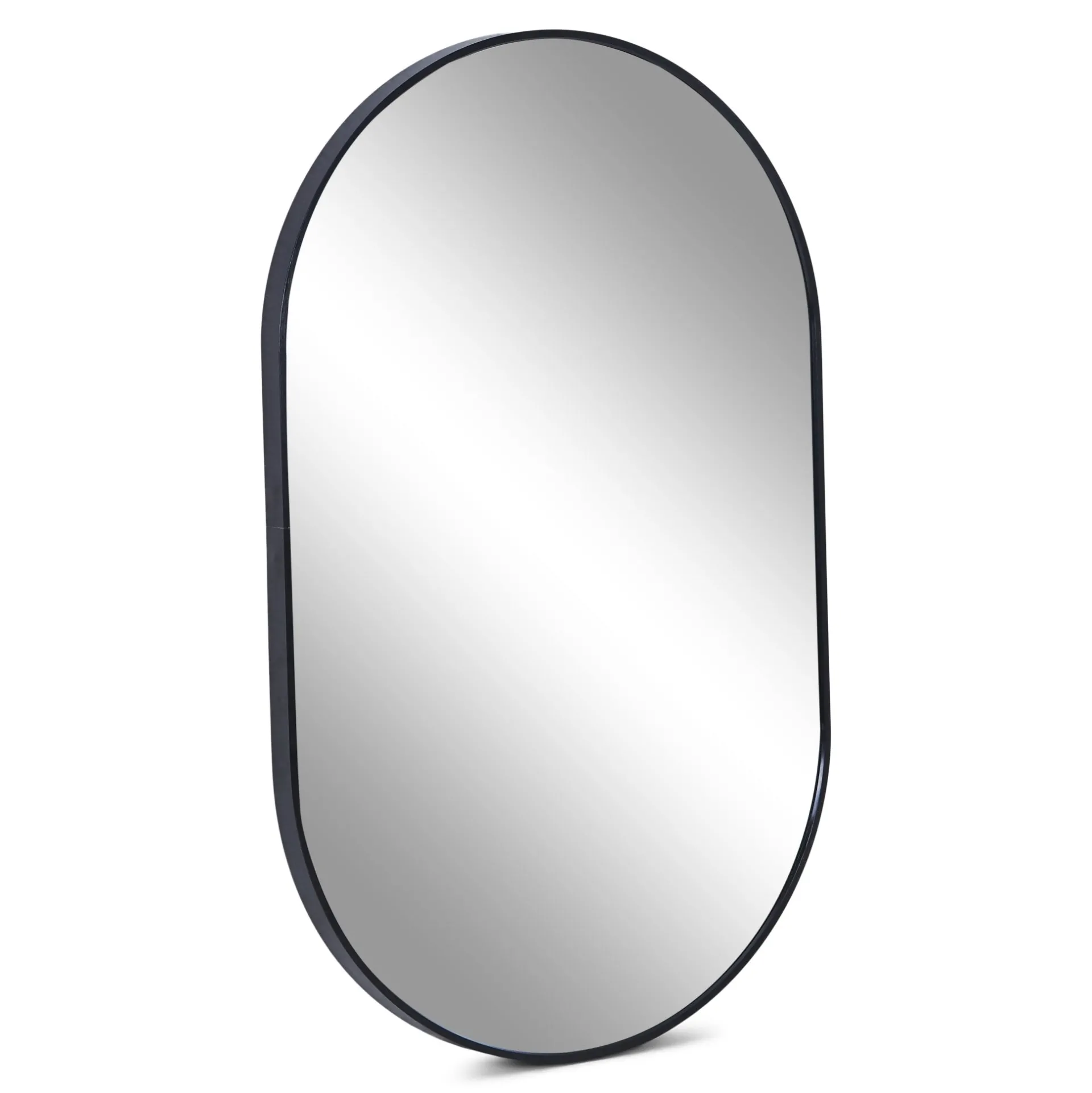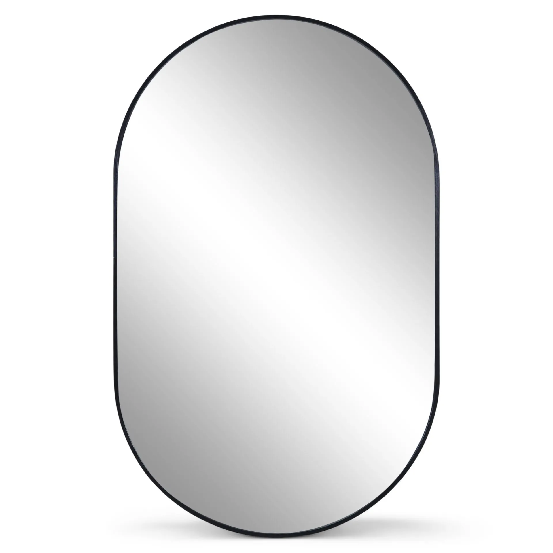 Når du indretter med spejle, skaber du både lys og dybde i rummet. Det ovale spejl med afrundede hjørner giver et blødt udtryk og passer perfekt i entré, stue, soveværelse eller badeværelse. Vælg mellem ramme i sort eller guld/messing.