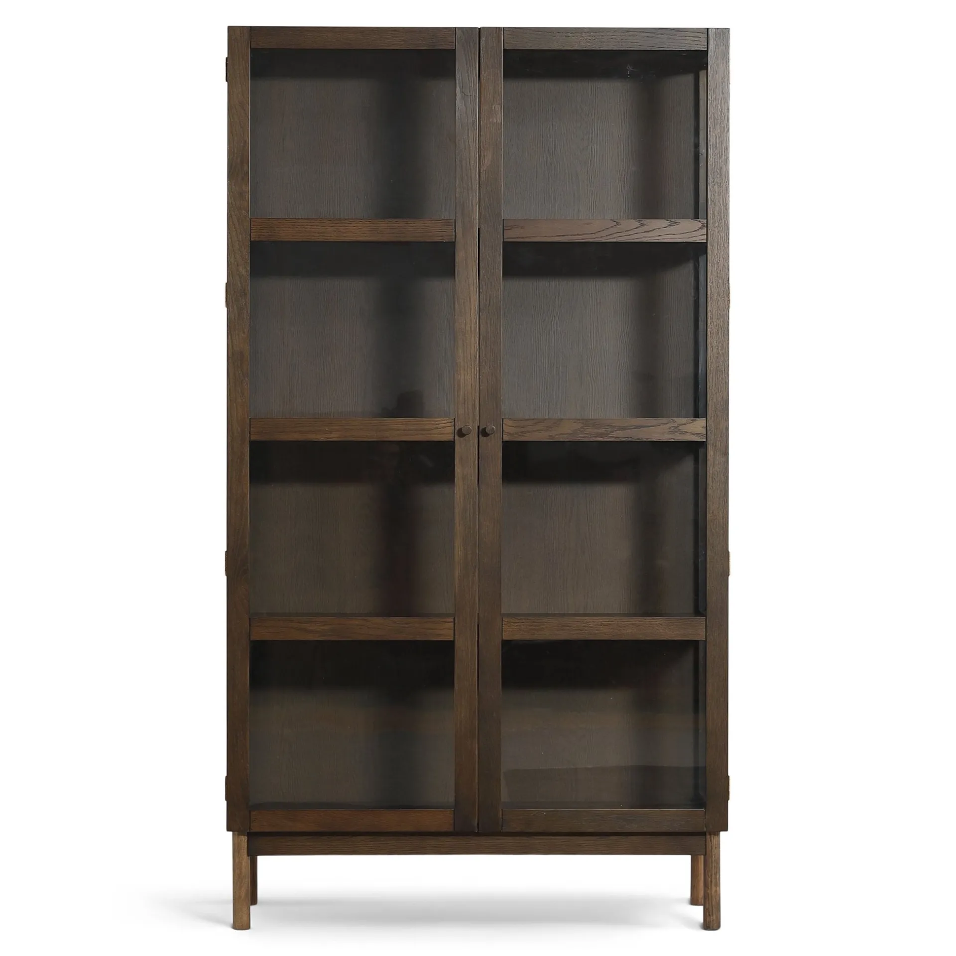 Havana vitrineskab i røget egetræ er en elegant og funktionel løsning til dit hjem. Det tidløse design med glaslåger giver et sofistikeret udtryk og beskytter samtidig dine ejendele mod støv og skader. Med glas vitrineskabe vil du være i stand til at nyde fuld synlighed af dine genstande, samtidig med at de forbliver beskyttet. Skabet måler 180x40x100 cm og er rummeligt, men med en slank silhuet, der passer ind i både moderne og klassiske indretningsstile.