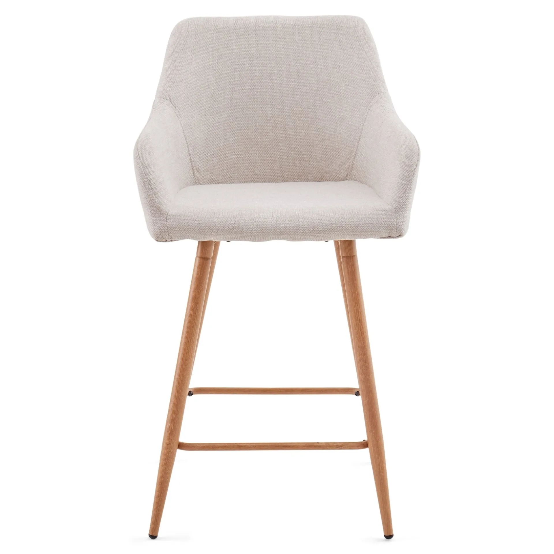 Jenna barstol – Beige tekstil med armlæn, 65 cm