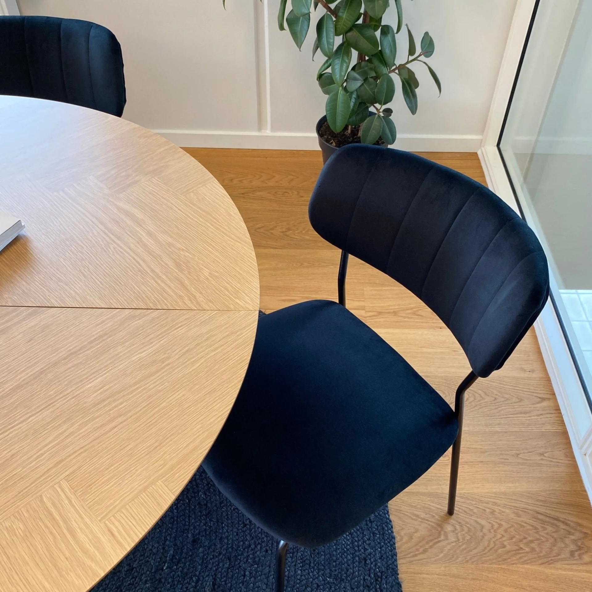 Denne enkle og stilfulde spisebordsstol med sort velour vil give ethvert rum en enkel og moderne følelse. Stolen er lavet af høj kvalitets velour materiale, som giver en blød og luksuriøs følelse, når man sidder på den. Den sorte farve giver en tidløs elegance og passer til enhver indretningsstil.